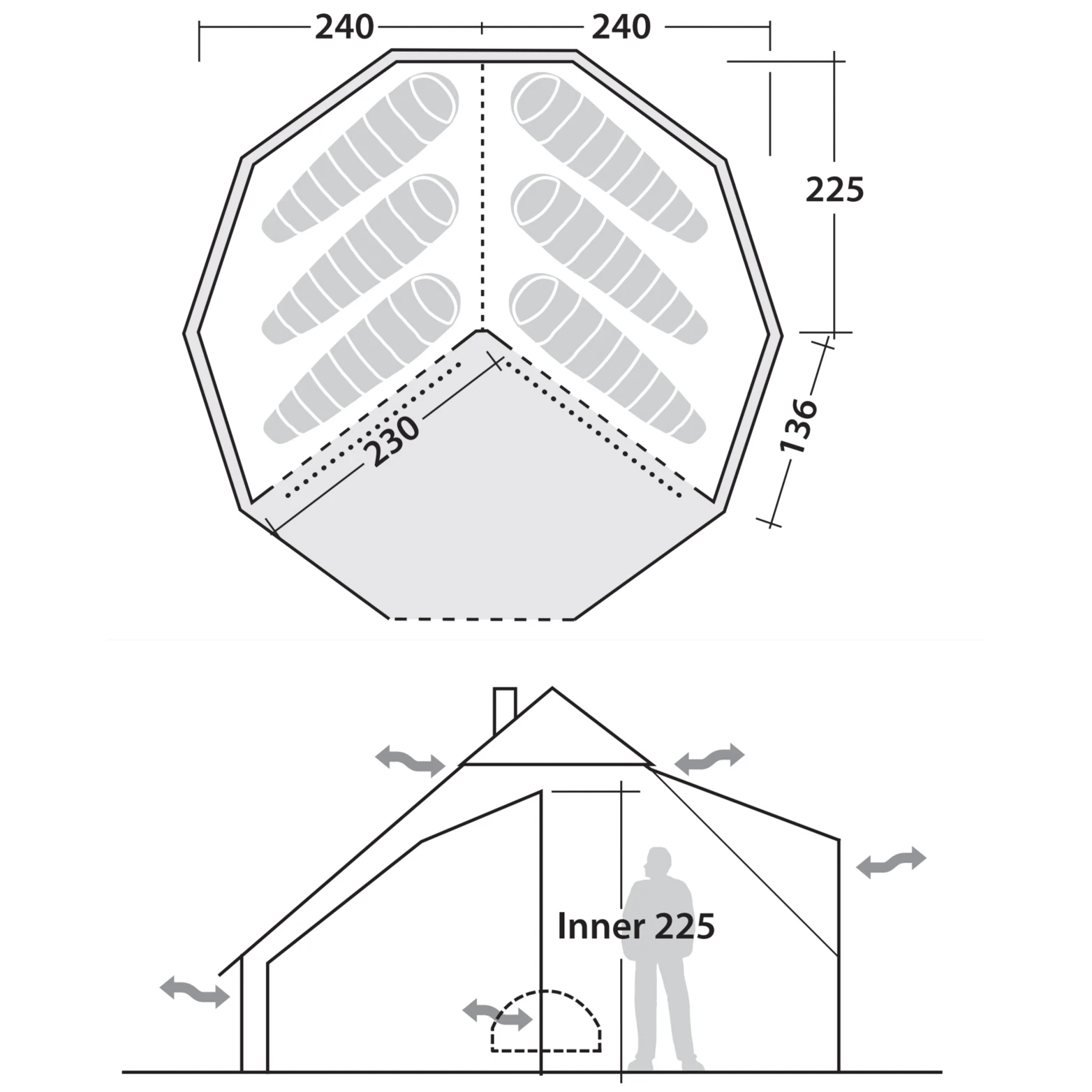 Der Schlafraum im Zelt Robens Klondike Grande gehört zum Zehn-Personen-Zelt Robens Klondike Grande. Sie können es verwenden, wenn Sie Privatsphäre brauchen. Außerdem lässt sich ein Schlafzimmer besser heizen als ein großer, offener Raum. Ihre Freunde sind häufig erkältet oder husten und Ihnen gefällt die Vorstellung nicht, neben ihnen schlafen zu müssen? In diesem Schlafzimmer werden Paare und Kinder getrennt.