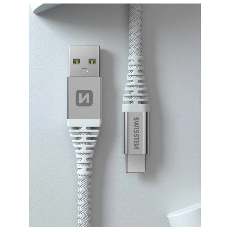 Das extrem langlebige Datenkabel Swissten für USB / USB-C Anschlüsse ist mit Kevlar-Faser verstärkt und 1,5m lang. 60 W (3 A)