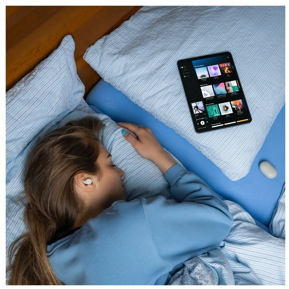 Die Buds Pro koppeln sich sofort nach dem Öffnen des Case und dank Master-Slave-Modus können Sie jeden Ohrhörer separat verwenden. Über die Touch-Oberflächen beider Kopfhörer lassen sich Playlist und Lautstärke intuitiv steuern. Mit den Kopfhörern können Sie bis zu 5 Stunden lang Musik hören oder telefonieren. In Kombination mit dem Etui beträgt die Akkulaufzeit bis zu 20 Stunden.