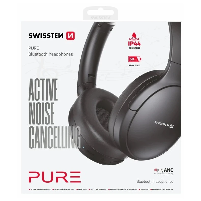 Kabelloser Kopfhörer Swissten ANC Pure, der extremen Tragekomfort mit erstklassiger Klangqualität und aktiver Geräuschunterdrückung kombiniert.