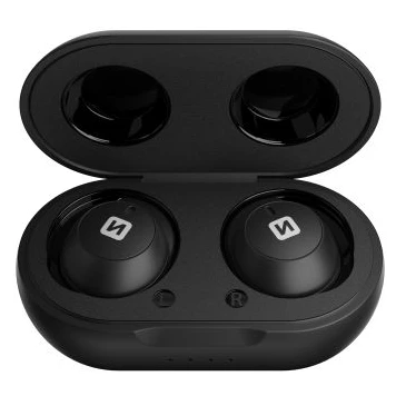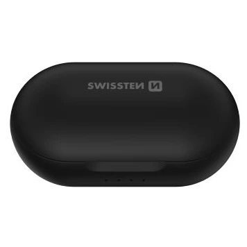Kabelloser Stereo-Kopfhörer Swissten STONEBUDS mit Ladebox und minimalistischem Design.