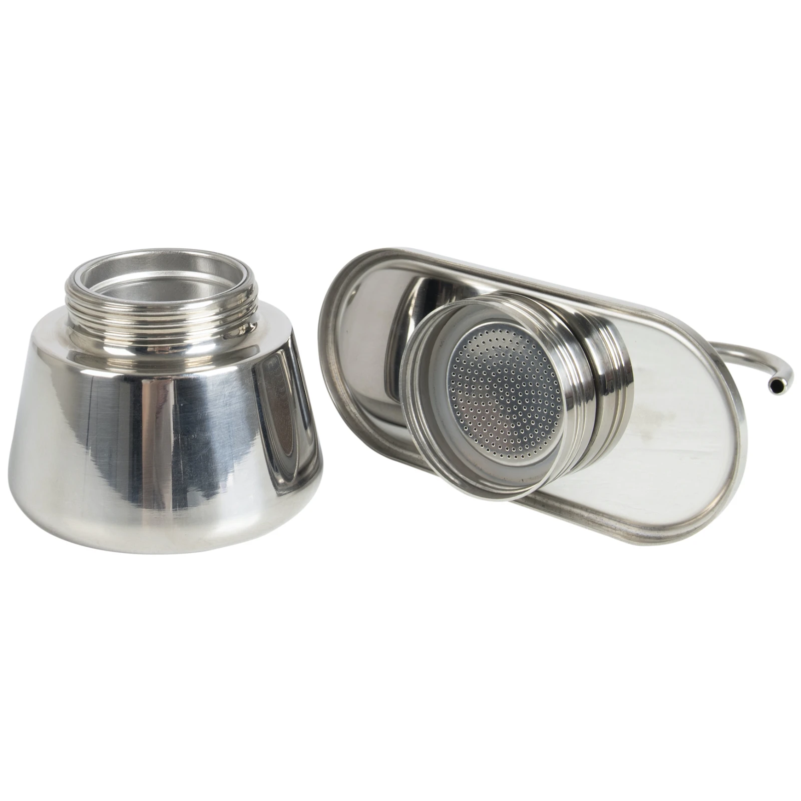 Der robuste Stahl- Kaffeebereiter Percolator 2-Tassen der Firma Bo-Camp ist für 2 Tassen Kaffee geeignet. Mit dieser Kaffeemaschine können Sie in wenigen Minuten eine köstliche Tasse Kaffee zubereiten. Ganz einfach mitzunehmen.