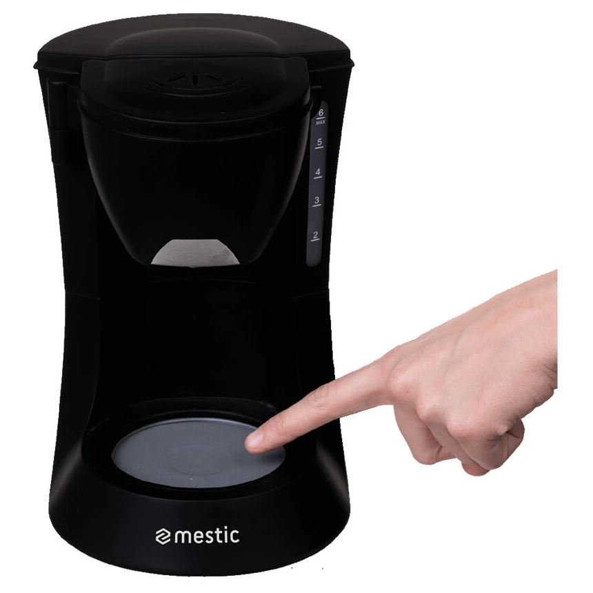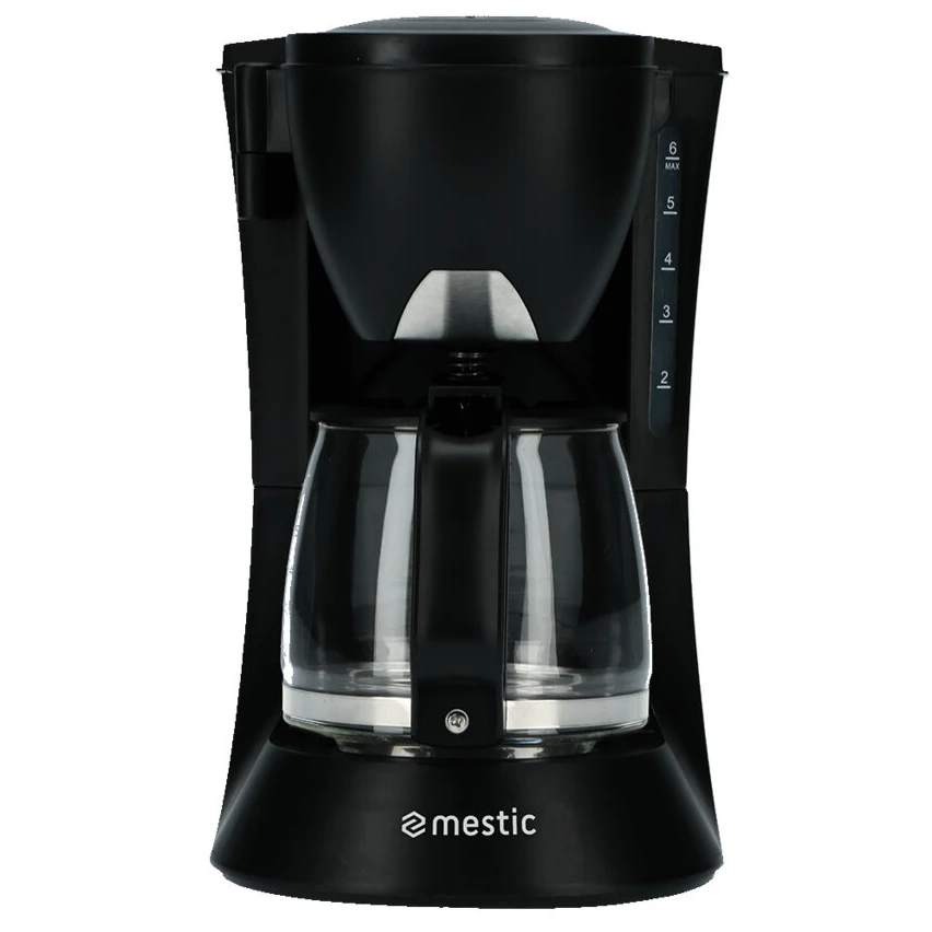 Der Mestic MK-60 ist eine kleine und praktische Kaffeemaschine, mit der Sie auch beim Campen bis zu 6 Tassen Filterkaffee zubereiten können. Sie müssen lediglich Filter in die Kaffeemaschine einlegen, gemahlenen Kaffee und Wasser hinzufügen und die Taste drücken. Die Kaffeemaschine hat eine Wasserstandsanzeige, sodass Sie genau wissen, wie viele Tassen Sie mit der jeweiligen Wassermenge zubereiten können. Nach dem Brühen schaltet sie sich automatisch ab, was für Sicherheit sorgt und Energie spart. Dank der geringen Leistungsaufnahme von 600 W ist sie ideal für den Einsatz auf Campingplätzen und in der Natur. Die Kaffeemaschine ist kompakt, wiegt nur 1 kg und hat ein modernes Aussehen mit einem schwarzen Gehäuse und einer Glaskanne.