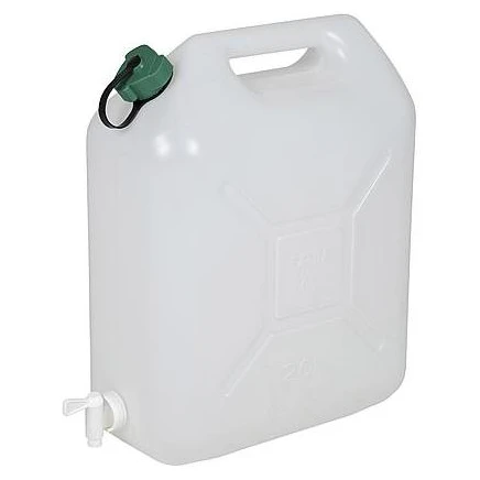 Der sehr starke und robuste Jerrycan 20l von Eda ist eine ausgezeichnete Wahl als Wasserreservoir für Camping- oder Festivalaufenthalte. Der dickwandige Behälter besteht aus Polyethylen, welches sehr robust ist und allen Stößen standhält. Der Kanister verfügt über einen schwenkbaren Hahn, der das Ausgießen erleichtert, einen drehbaren Deckel und einen stabilen Tragegriff.