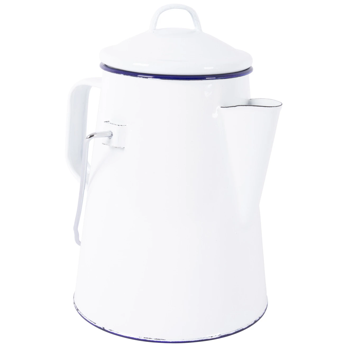 Die Emaille-Teekanne Tea Kettle Bo-Camp ist nicht nur praktisch, sondern auch elegant. Die Emaille-Schicht sorgt für zusätzliche Hygiene und Robustheit und gewährleistet Ihnen somit eine hochwertige und langlebige Nutzung. Der Kessel ist außerdem hitzebeständig und eignet sich daher ideal zum Zubereiten von Tee oder anderen Heißgetränken über dem Feuer oder einem Campingkocher.