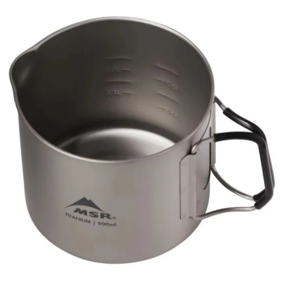 Die Marke MSR , die auf die Entwicklung und Produktion der besten Outdoor-Hardware auf dem Markt spezialisiert ist, hat diese Kochhilfe als Universalbehälter zum Erhitzen von Flüssigkeiten hergestellt. Dank seiner Größe lässt er sich als Becher, Henkelbecher oder dank des offenen Ausgusses auch wie der bereits erwähnte Titan Kettle 900mlverwenden.