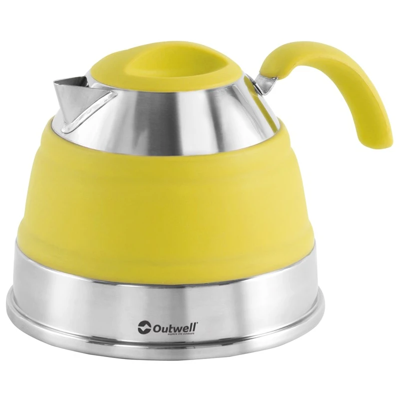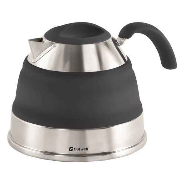Wasserkocher Outwell Der Collaps Wasserkocher lässt sich leicht zusammenklappen, ist stoßfest und leicht zu reinigen. Edelstahl ermöglicht das Aufstellen des Wasserkochers auf einer direkten Wärmequelle, Silikon enthält keine schädlichen Kunststoffe.