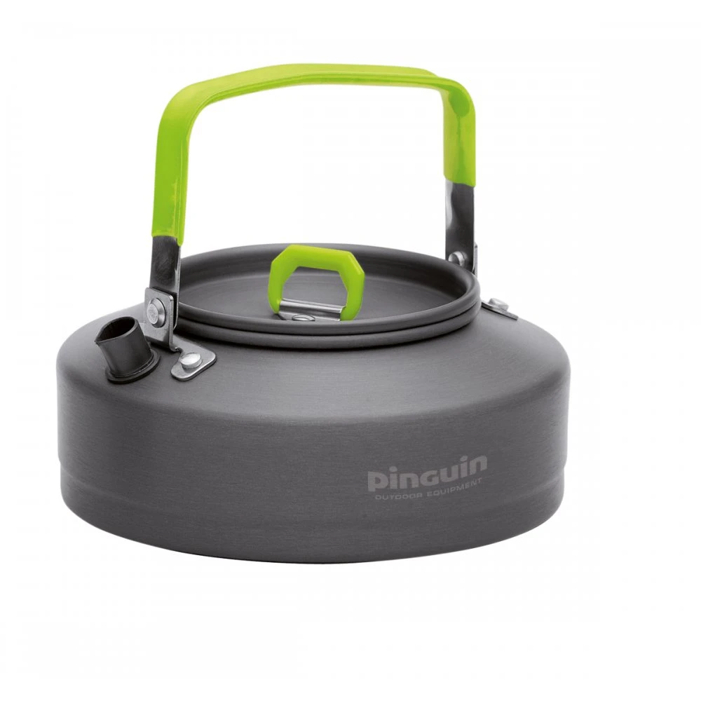 Der faltbare Wasserkocher Kettle S von Pinguin mit Deckel und klappbarem Griff, mit einem Fassungsvermögen von 0,7 Litern, ist aus gehärtetem Aluminium gefertigt. Die Oberfläche ist mit einer Eloxalschicht versehen, die eine feuer- und abriebfeste Beschichtung aufweist.