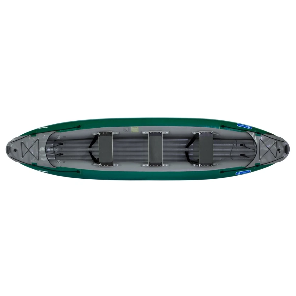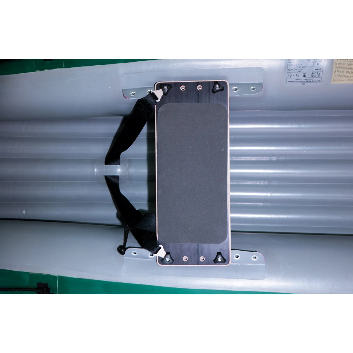 Praktische Tragegriffe an Bug und Heck zum bequemen Tragen des Bootes. Für Komfort sorgen Sitze aus wasserfestem Sperrholz mit COMFORT PAD PE-Schaum. Selbstverständlich sind Sicherungsseile am Bug und Heck, Schenkelgurte mit Sicherheitsschnalle und elastische Seile zur Gepäcksicherungvorhanden. Außerdem verfügt das Boot über variable Halterungen für Gepäck oder einen dritten Sitzplatz.