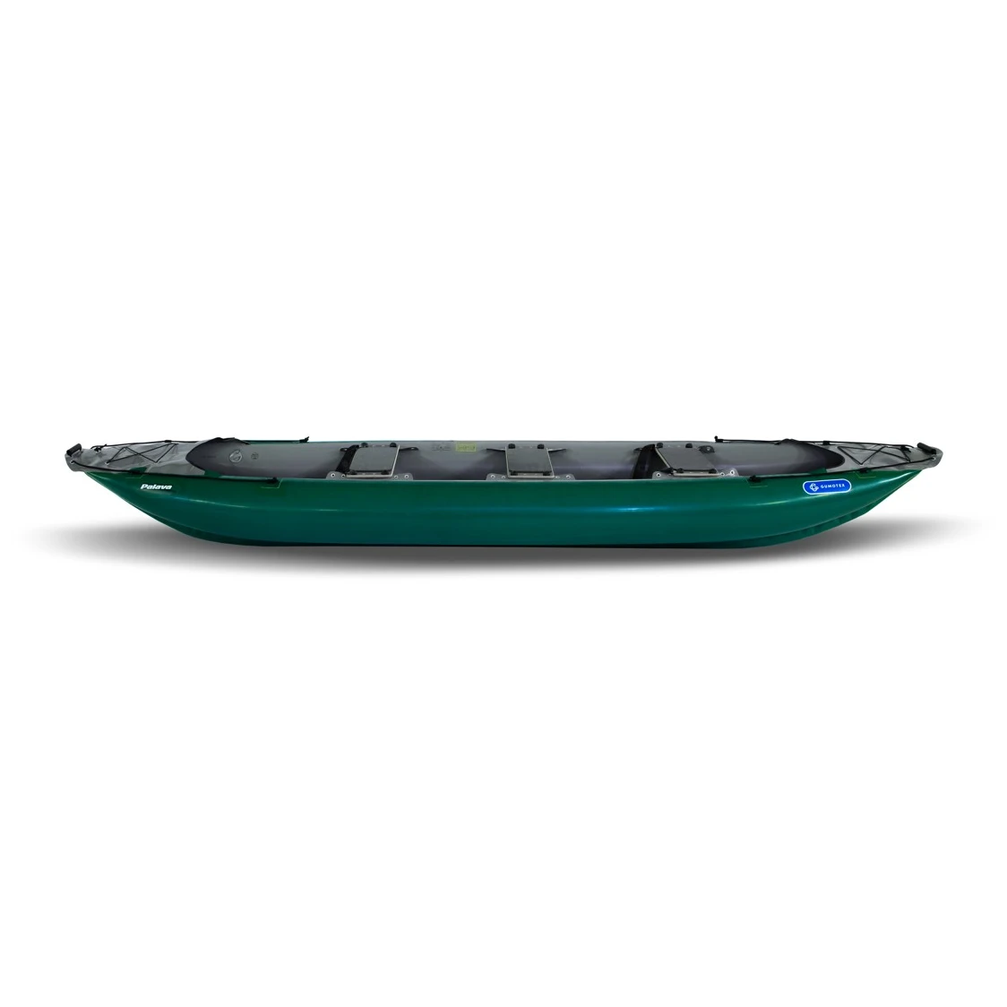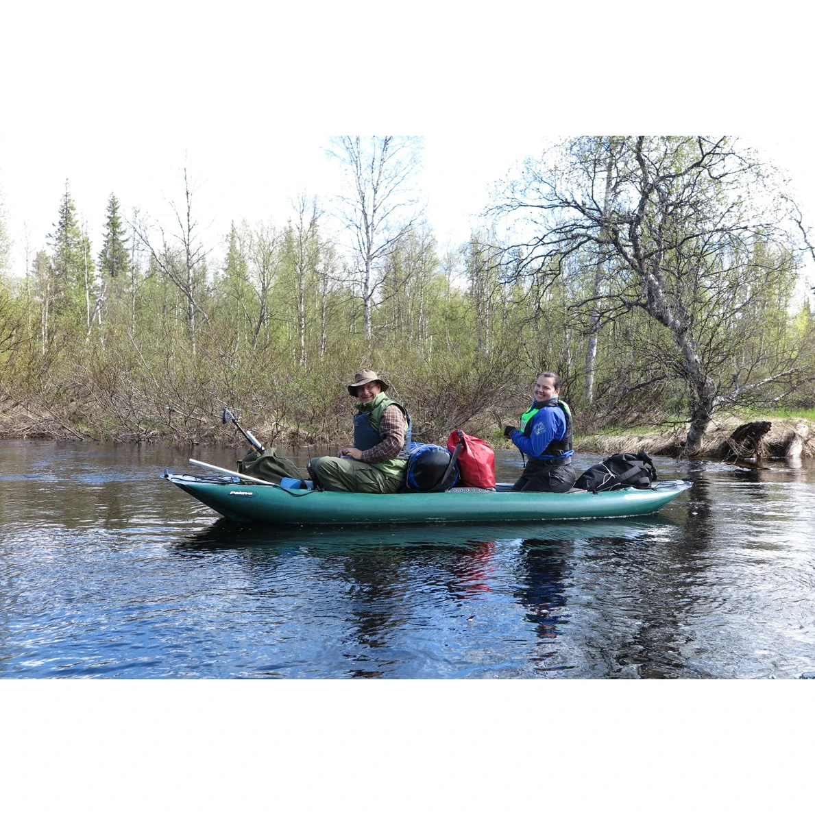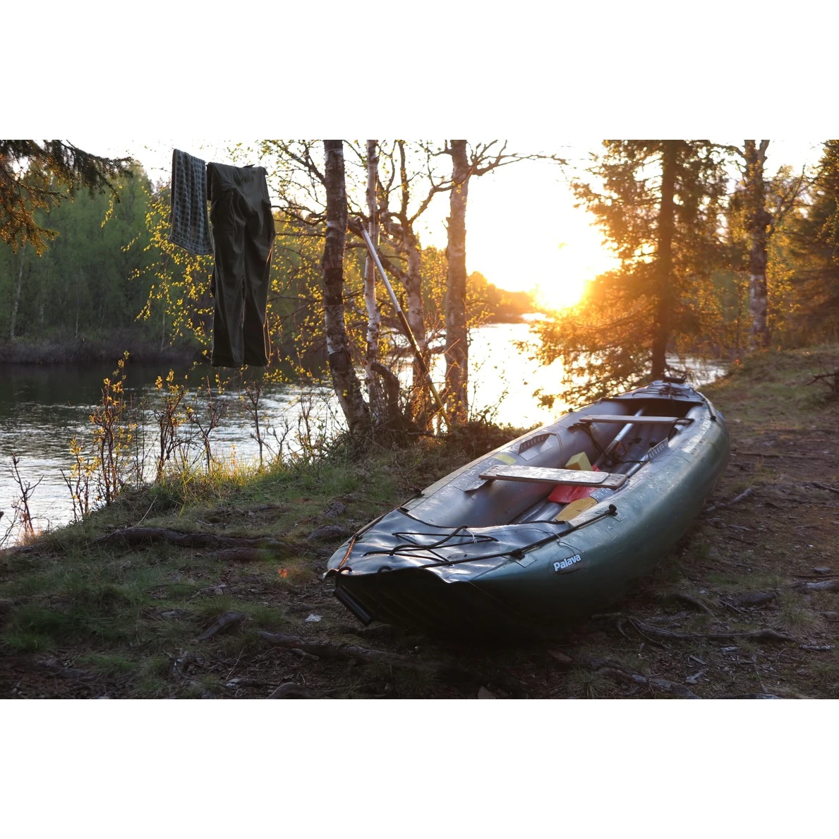 DasSchlauchkanu PALAVA 400 der Marke Gumotex überzeugt durch seine sportliche Optik und seine hervorragenden Fahreigenschaften. Dank seines verlängerten Rumpfs bietet er viel Raum zur Gepäckverstauung und die Variabilität der Sitzeinbauten, die mit ihrer Breite und horizontalen Anbringung für bequemes Sitzen sorgen. Beim Navigieren durch Stromschnellen ist es möglich, niederzuknien und Oberschenkelgurte zu verwenden.