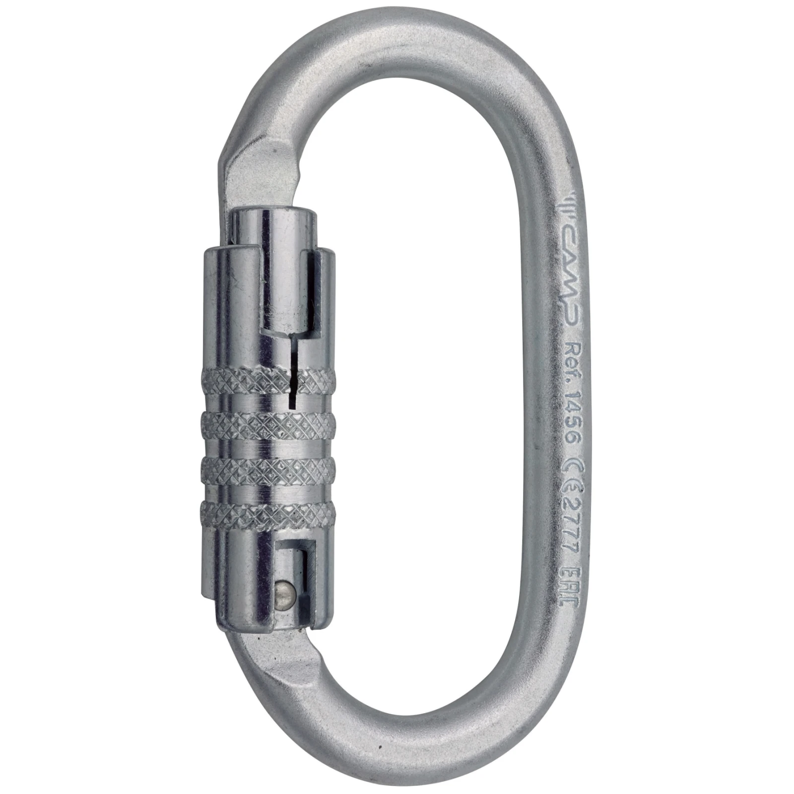 Sehr robuster und langlebiger ovaler Keylock- Karabiner aus Stahl mit automatischem 3-Positionen-3Lock-Verschluss. Zum Öffnen des 3Lock (Dreifachverriegelung) sind drei Bewegungen erforderlich: Herausschieben, Drehen und Herausklappen. Das Schloss lässt sich problemlos mit einer Hand, sogar mit Handschuh, öffnen. Es ist jedoch eine gute Idee, diese drei Bewegungen vorab zu Hause zu üben. Dieser Karabiner hat eine Längsfestigkeit von 30kN.