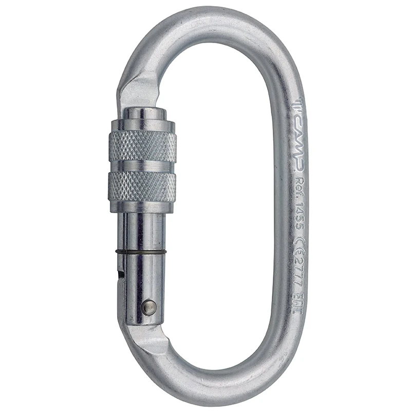 Sehr starker und langlebiger ovaler Keylock-Karabiner aus Stahl mit Schraubverschluss. Eine Verzinkung hilft, Korrosion in feuchten Umgebungen zu verhindern. Besonders nützlich mit Flaschenzügen bei Rettungsarbeiten.