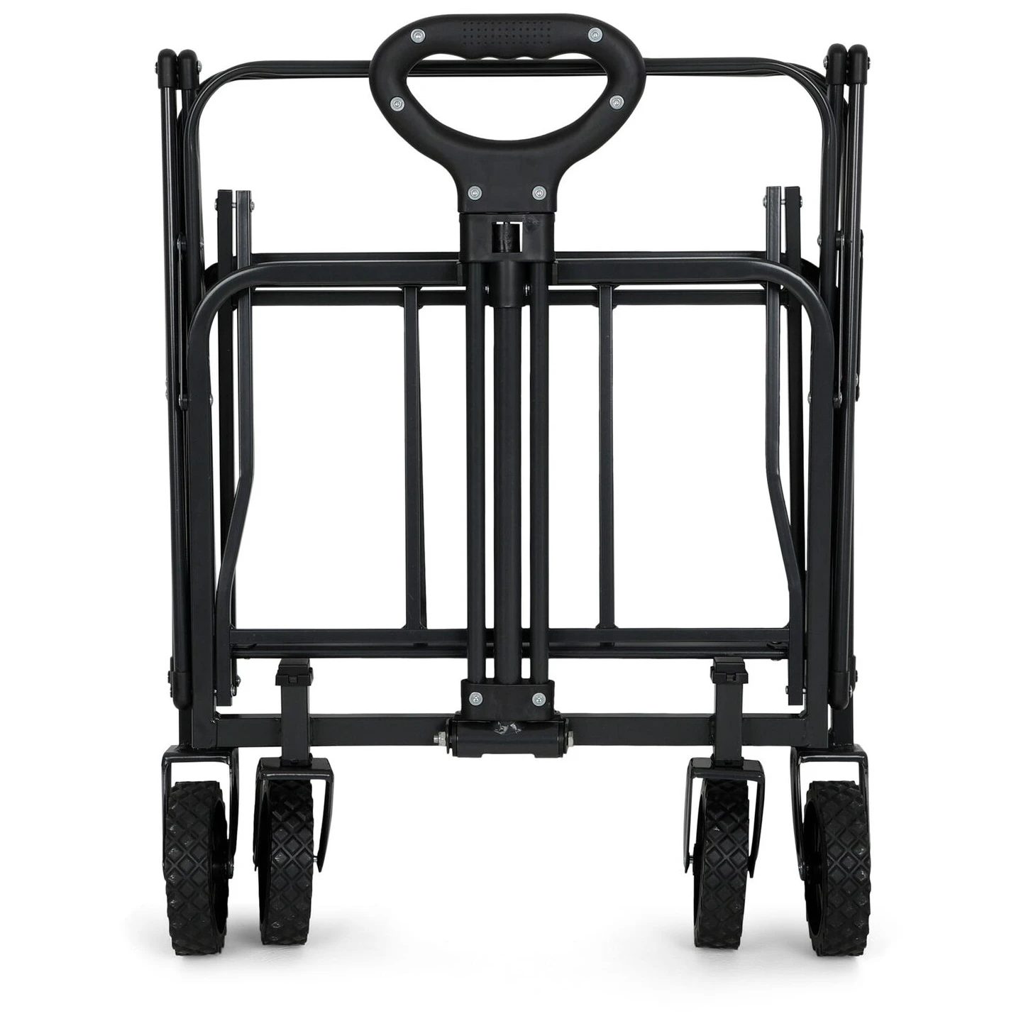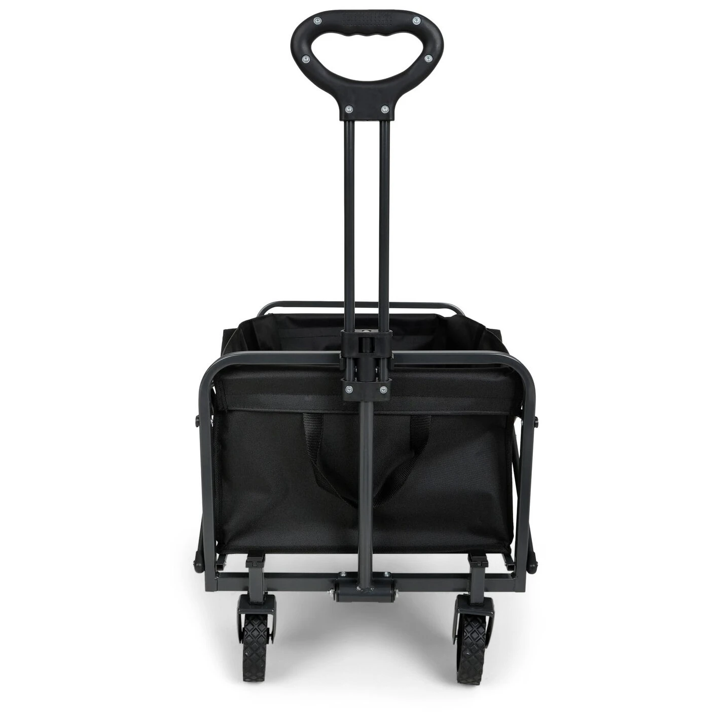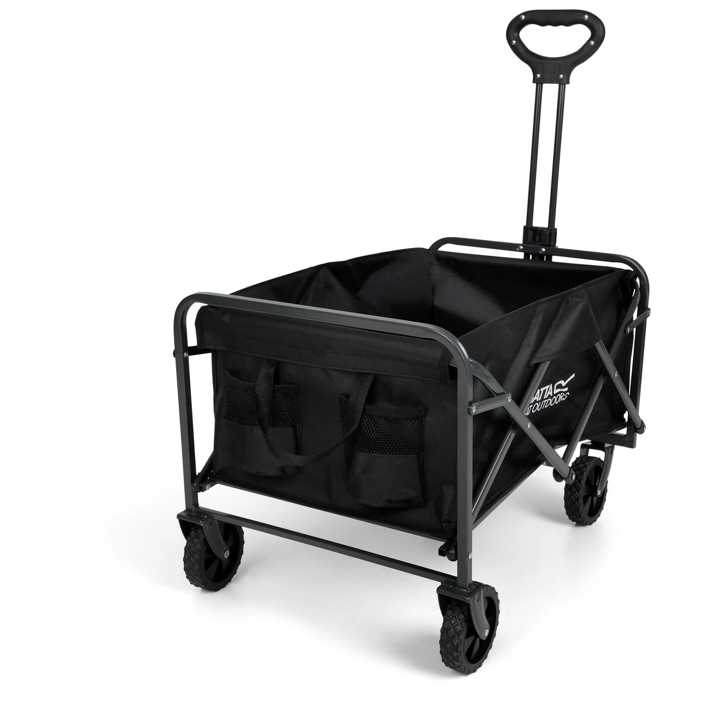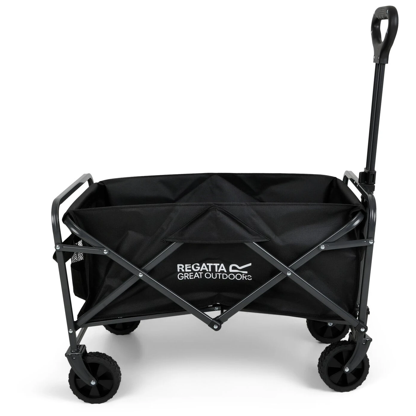 Der praktische und robuste Transportwagen Folding Cart von Regatta ist für den einfachen Transport schwererer Lasten bestimmt. Dank des faltbaren Rahmens lässt sich der Wagen einfach zusammenklappen und verstauen. Die robuste Stahlkonstruktion wird durch ein strapazierfähiges Polyestergewebe mit verstärktem Boden und einem Teleskopgriff ergänzt. Die Räder haben einen Durchmesser von 12 cm, die vorderen sind um 360° drehbar.