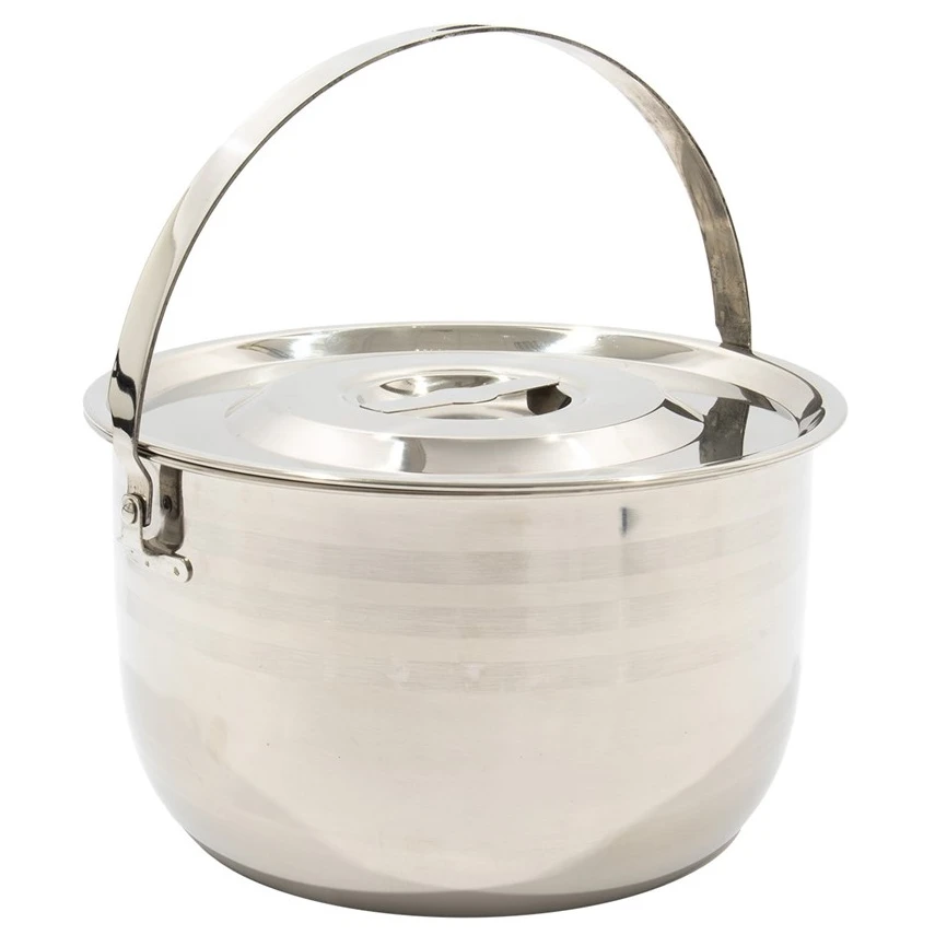 Der Yate Edelstahlwasserkocher mit Deckel, 6 Liter, ist aus hochwertigem und gesundheitlich unbedenklichem Material für die Lebensmittelzubereitung gefertigt. Der Kessel verfügt über eine klappbare Öse, dank der Sie den Kessel bequem über das Feuer hängen können. Der Topf ist abriebfest und auch bei starker Verschmutzung durch Feuerrauch sehr pflegeleicht.