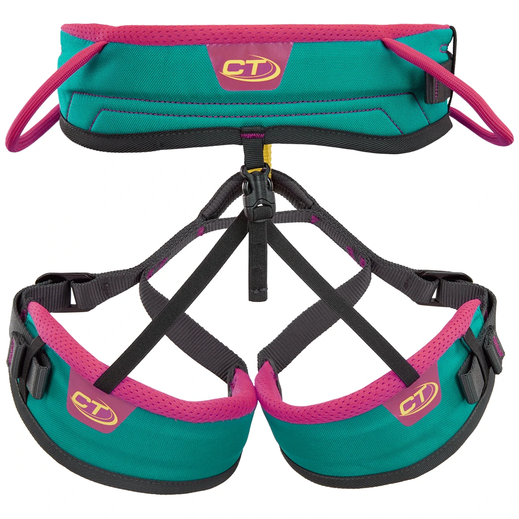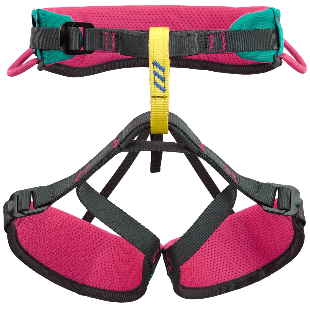 Der bewegliche Hüftgurt ermöglicht eine optimale Zentrierung der Sicherungsöse und der Materialschlaufen, während die Beinkonstruktion für eine gleichmäßige Lastverteilung beim Hängen im Sitz sorgt. Eine markante gelbe Sicherheitsöse minimiert die Möglichkeit von Bindefehlern und ein Verschleißindikator am unteren Bindepunkt hilft festzustellen, wann der Sitz abgenutzt ist. Der Gurt ist mit zwei großen Materialschlaufen und einer kleinen hinteren Schlaufe zur Befestigung einer Magnesiumtasche ausgestattet.