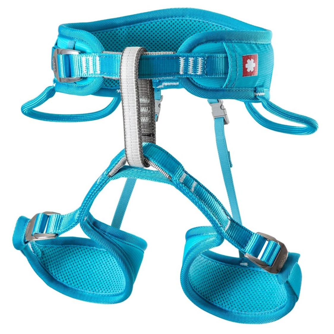 Twist Kids der Marke Ocún ist ein sportliches Kinder- -Geschirr. Der Tragegurt verläuft frei durch den Tunnel in der Polsterung. Dadurch lässt sich die Position der Polsterung im Verhältnis zur Bindeöse exakt anpassen.