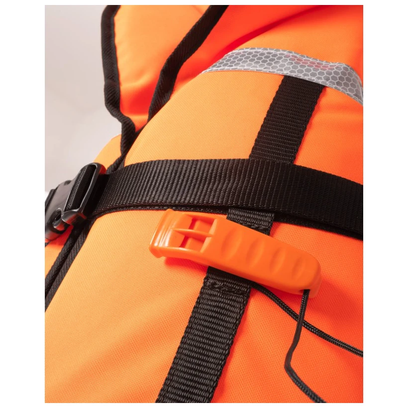 Ein durchgehendes Stück hochfestem Gurtband verläuft um den gesamten Umfang von der Vorderseite der Schwimmweste zwischen den Beinen hindurch bis hinauf zum Kragen, wo es fest befestigt ist und als Griff dient. So können Sie Ihr Kind schnell greifen, durch kritische Stellen führen oder auch am Griff hochheben und aus dem Wasser ziehen. Fluoreszierendes orangefarbenes Gewebe mit perfekter Sichtbarkeit in Kombination mit reflektierenden Elementen erleichtert es, Ihr Kind bei schlechten Sichtverhältnissen zu erkennen, was beim Segeln auf dem Meer oder Paddeln in der Dämmerung oder Dunkelheit sehr nützlich ist.