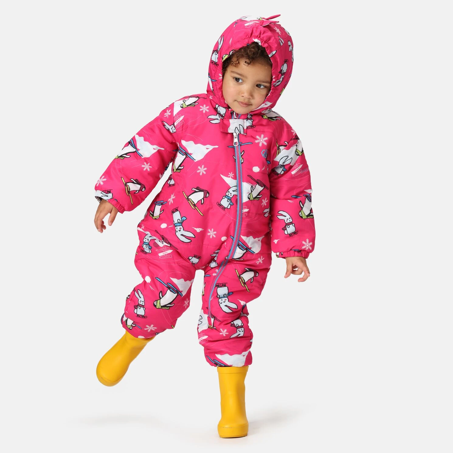 Bambino II Snowst ist ein Kinderoverall der Firma Dare 2b für die Kleinsten. Durch die durchgehende Öffnung lässt sich der Jumpsuit leicht anziehen.