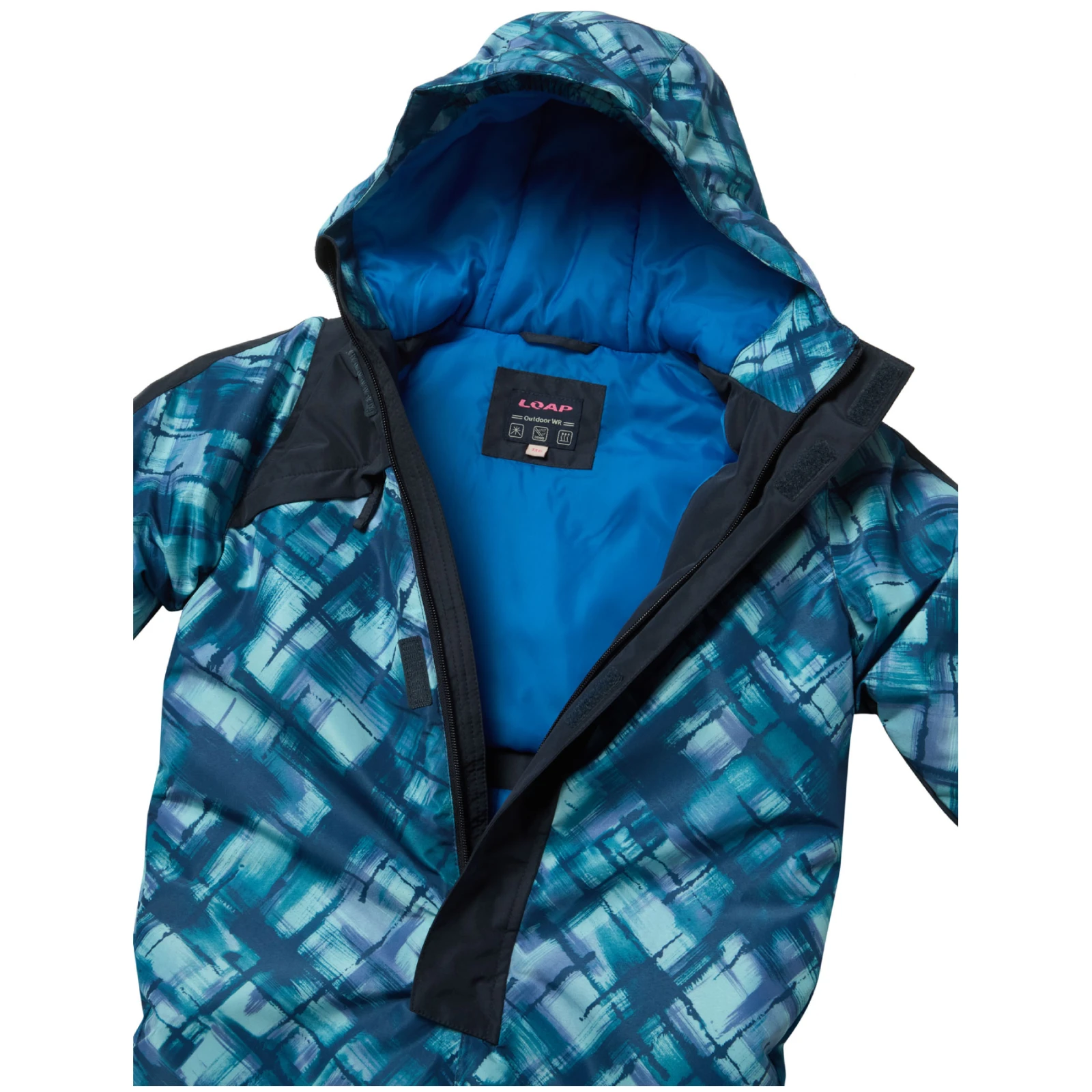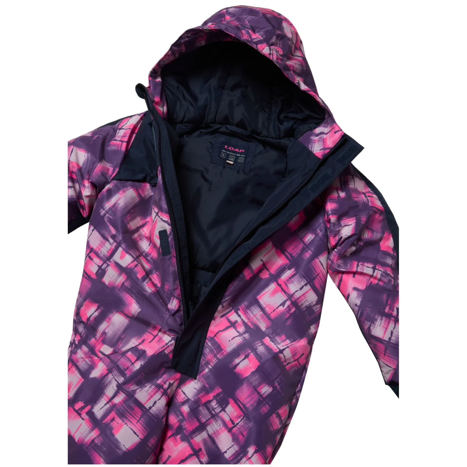 Der Kinderskianzug CUVEN der tschechischen Marke Loap mit AQUA PRO-Membran und POLYTHERM-Isolierung hält die kleinen Skifahrer den ganzen Tag auf der Piste trocken und warm.