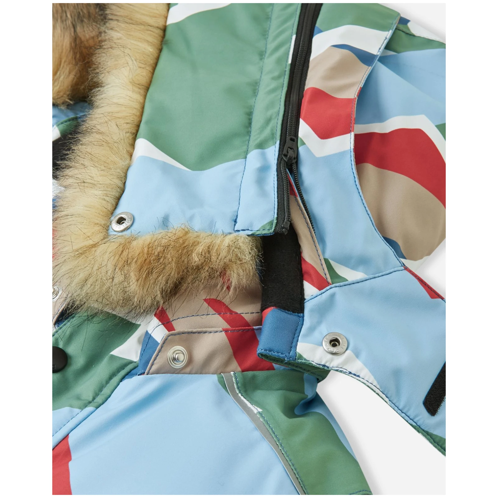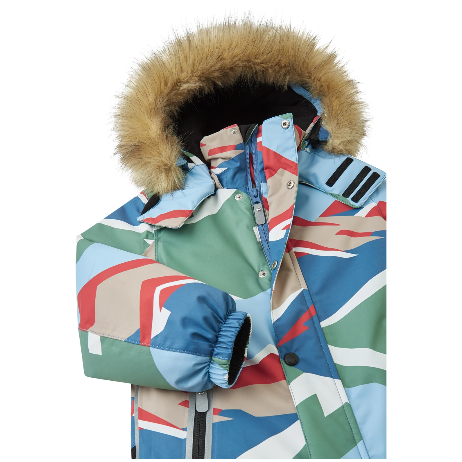 Superwarmer Kinder Winteroverall der Marke Kipina Reima aus erstaunlich flexiblem Material. Das Material ist wasserdicht und der Overall ist für ein aktives Kind konzipiert.