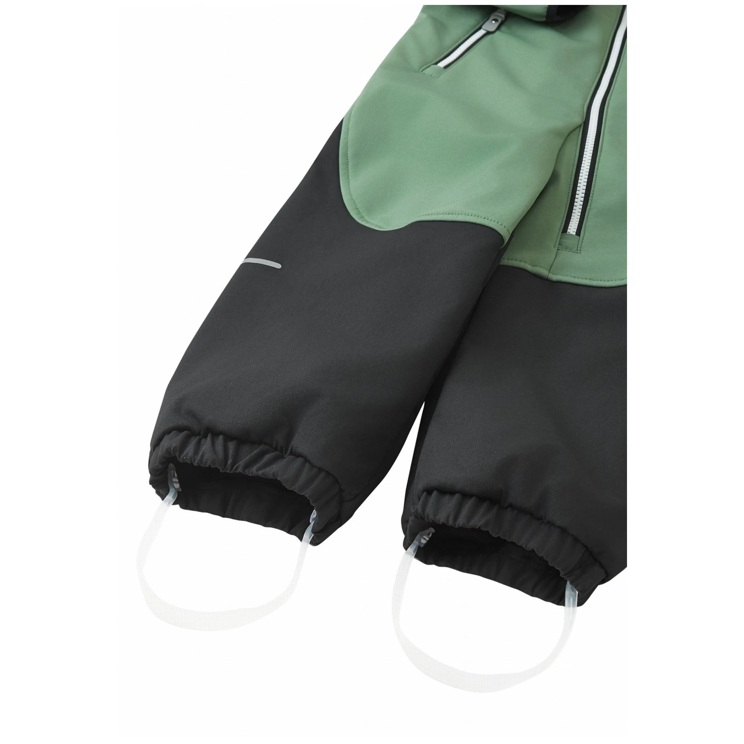 Der Mjosa Kinder-Softshell-Overall von Reima ist die ideale Wahl für kaltes Wetter und alle Aktivitäten. Der Overall besteht aus Polyester mit einer Beimischung von Elasthan für mehr Flexibilität sowie einer Polyurethan-Membran für perfekte Wasserbeständigkeit. Das Material ist mit einer Teflon EcoEliteTM -Oberflächenbehandlung versehen, die Wasser und Schmutz abweist. Zum einfachen Anziehen verfügt der Jumpsuit über einen langen Reißverschluss auf der Vorderseite, der diagonal vom Hals bis zum Bein verläuft und zusätzlich mit einem Kinnschutz versehen ist.
