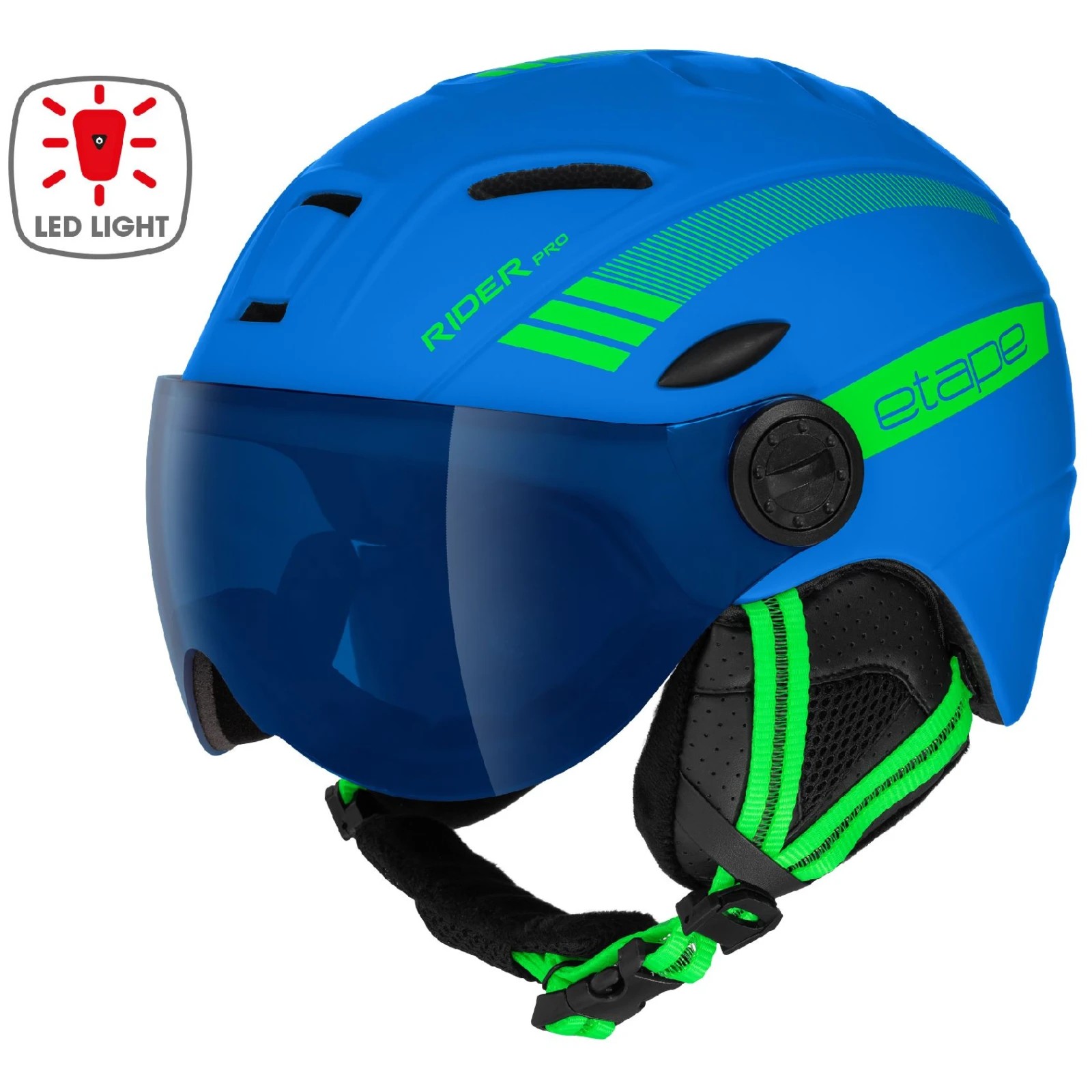 Der Kinderskihelm Etape Rider Pro Light verfügt über eine innovative LED-Rückbeleuchtung, die fest mit dem Helm verbunden ist und so die Sicherheit Ihres Kindes auf der Piste erhöht. Weiche Ohrenschützer sind nahtlos mit der Helmschale verbunden und gewährleisten ein angenehmes Tragegefühl, ohne den Kopfschutz zu beeinträchtigen. 18 Belüftungslöcher sorgen für eine hochwertige Belüftung mit der Möglichkeit zur stufenlosen Regulierung.