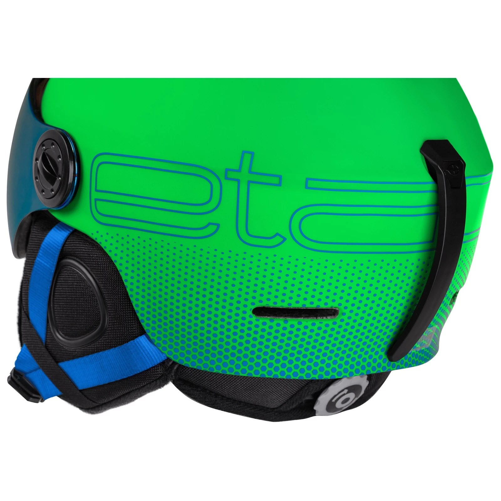 Der Junior Skihelm Etape Speedy Pro mit einem Gewicht von nur 370 g inklusive Visier ist in moderner In-Mold-Technologiehergestellt. 10 Belüftungslöchersorgen für ausreichende Belüftung. Weiche Ohrmuscheln und eine anschmiegsame Polsterung sorgen auch beim ganztägigen Tragen für ausreichend Komfort. Der Helm ist mit einem verspiegelten Visier mit Filter der Kategorie S 2 ausgestattet, das kratzfest ist und über eine ZeroFog-Antibeschlagbeschichtungverfügt. Das abnehmbare Visier ist ein vollwertiger Ersatz für die Skibrille, passt perfekt zum Helm und sein unbestrittener Vorteil ist die einfache Handhabung. Alle Ski- und Snowboardhelme Etape sind nach der europäischen Norm EN 1077 (ČSN EN 1077) zugelassen.