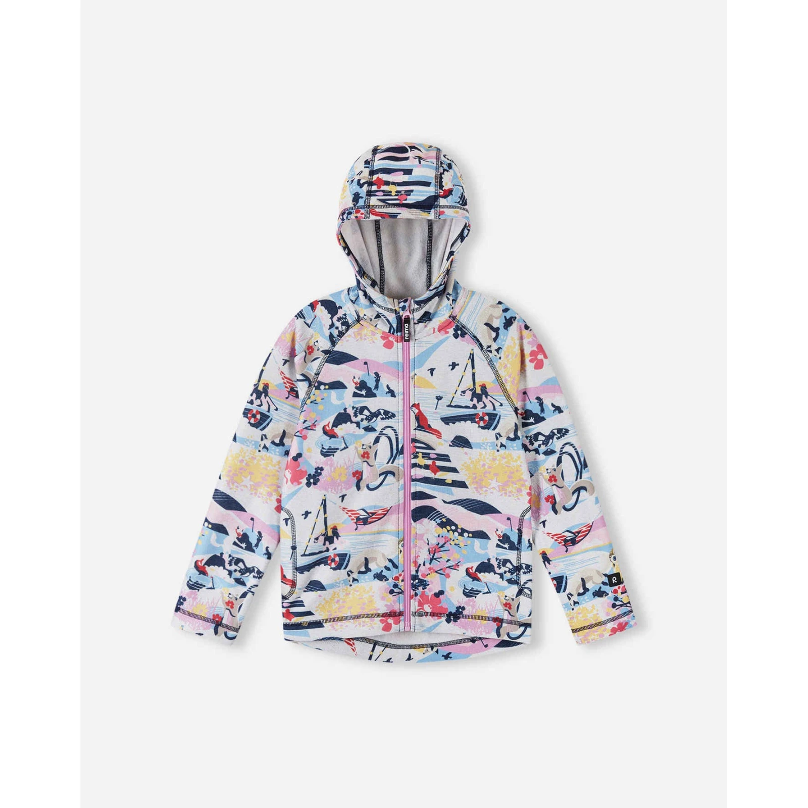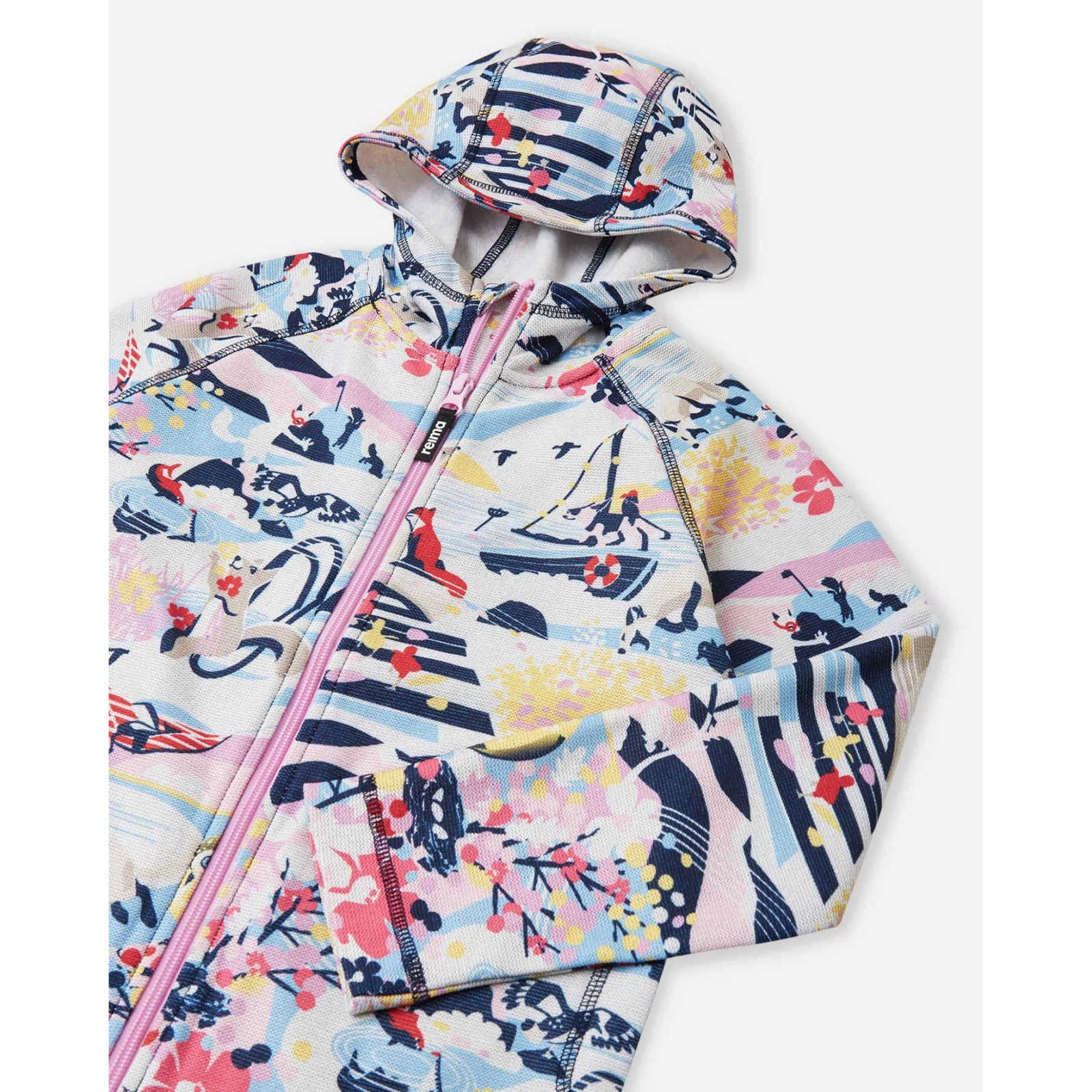 Das Kinder-Fleece-Sweatshirt Haave Reima aus recycelten Materialien bietet Wärmeregulierung, Feuchtigkeitstransport von der Haut, eine feste Kapuze, einen durchgehenden Reißverschluss und Seitentaschen.