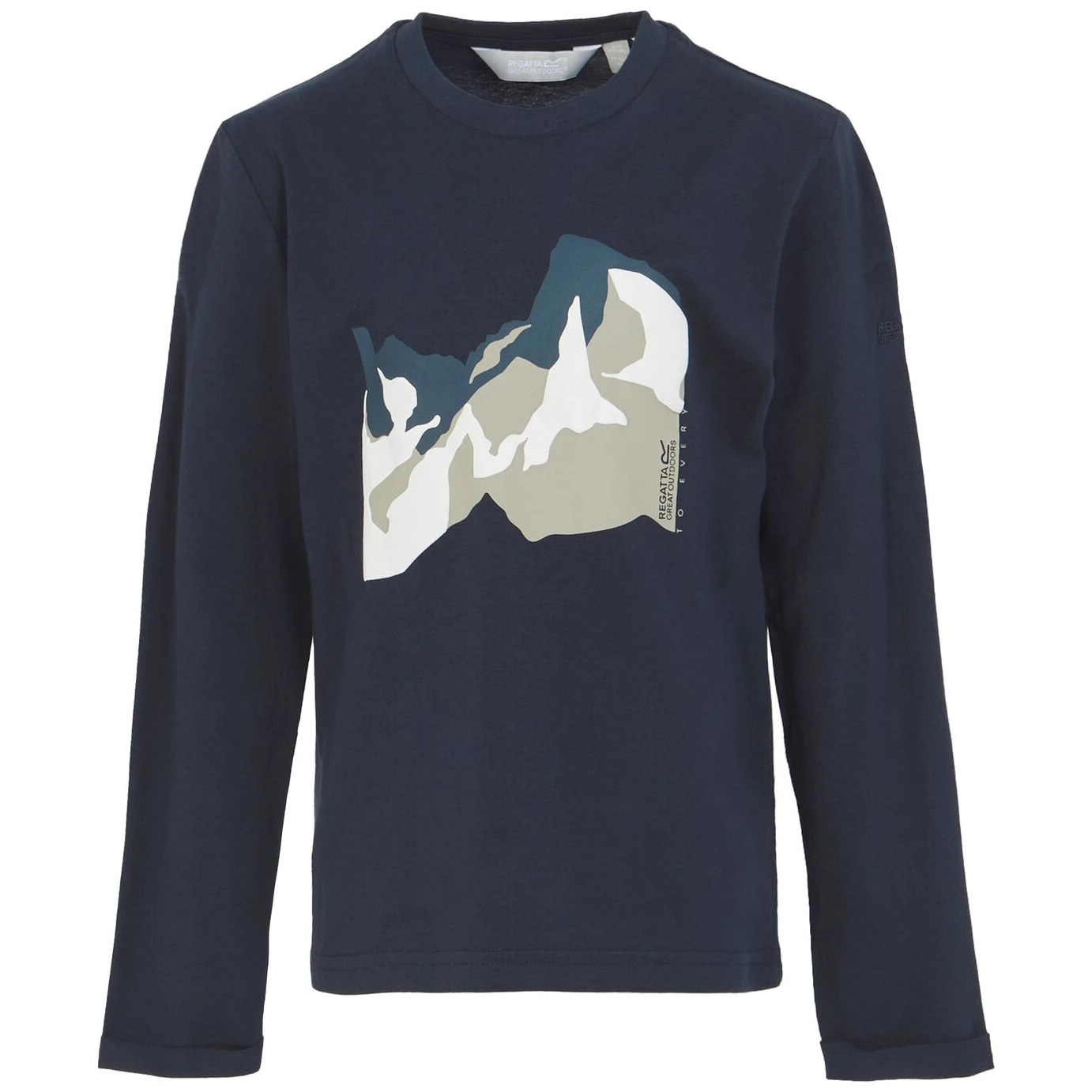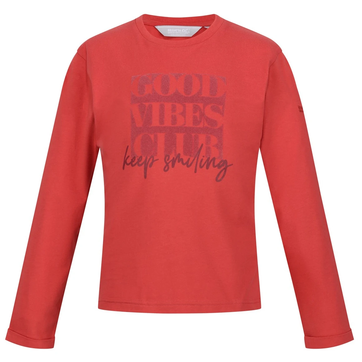 Wenbie III vom Hersteller Regatta ist ein Kinder Langarm T-Shirt verziert mit einem schönen Aufdruck auf der Vorderseite. Das T-Shirt ist bequem und fühlt sich angenehm an.