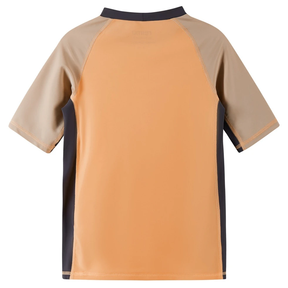 Kinder-T-Shirt Uiva von Reima ist die ideale Wahl für sonnige Tage, Schwimmen und aktive Bewegung im Freien. Es besteht aus elastischem SunProof+ Jersey-Material, das zu 80 % aus recyceltem Polyamid und zu 20 % aus Elastan besteht. Daher ist das T-Shirt leicht, elastisch, bequem und trocknet schnell. Das Material bietet hohen UV-Schutz 50+ gemäß Norm EN 13758-1 +A1 und schützt die Haut wirksam vor UVA- und UVB-Strahlung.