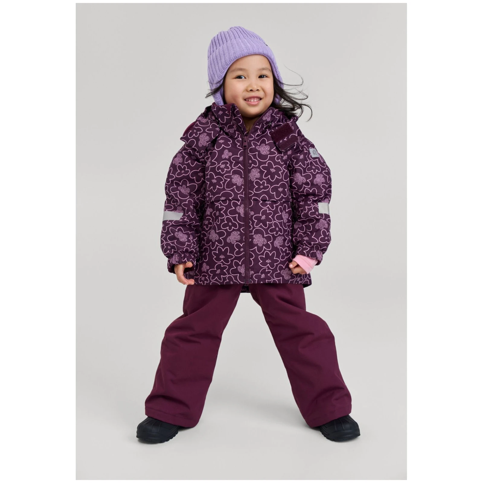 Die Muonio Kinder Winter Membranjacke der Marke Reima besteht aus atmungsaktivem, absolut wasser- und windabweisendem Material mit BIONIC-FINISH®ECO fluorcarbonfreier Behandlung, die dank ihrer Oberflächenbehandlung Schmutz abweist, sodass die Kleidung seltener gewaschen werden muss. Es verfügt über wasserdichte Nähte, ein glattes Futter mit recycelten Fasern und eine abnehmbare Kapuze. Es verfügt über zwei Reißverschlusstaschen auf der Vorderseite. Selbstverständlich sind reflektierende Elemente für bessere Sichtbarkeit vorhanden.