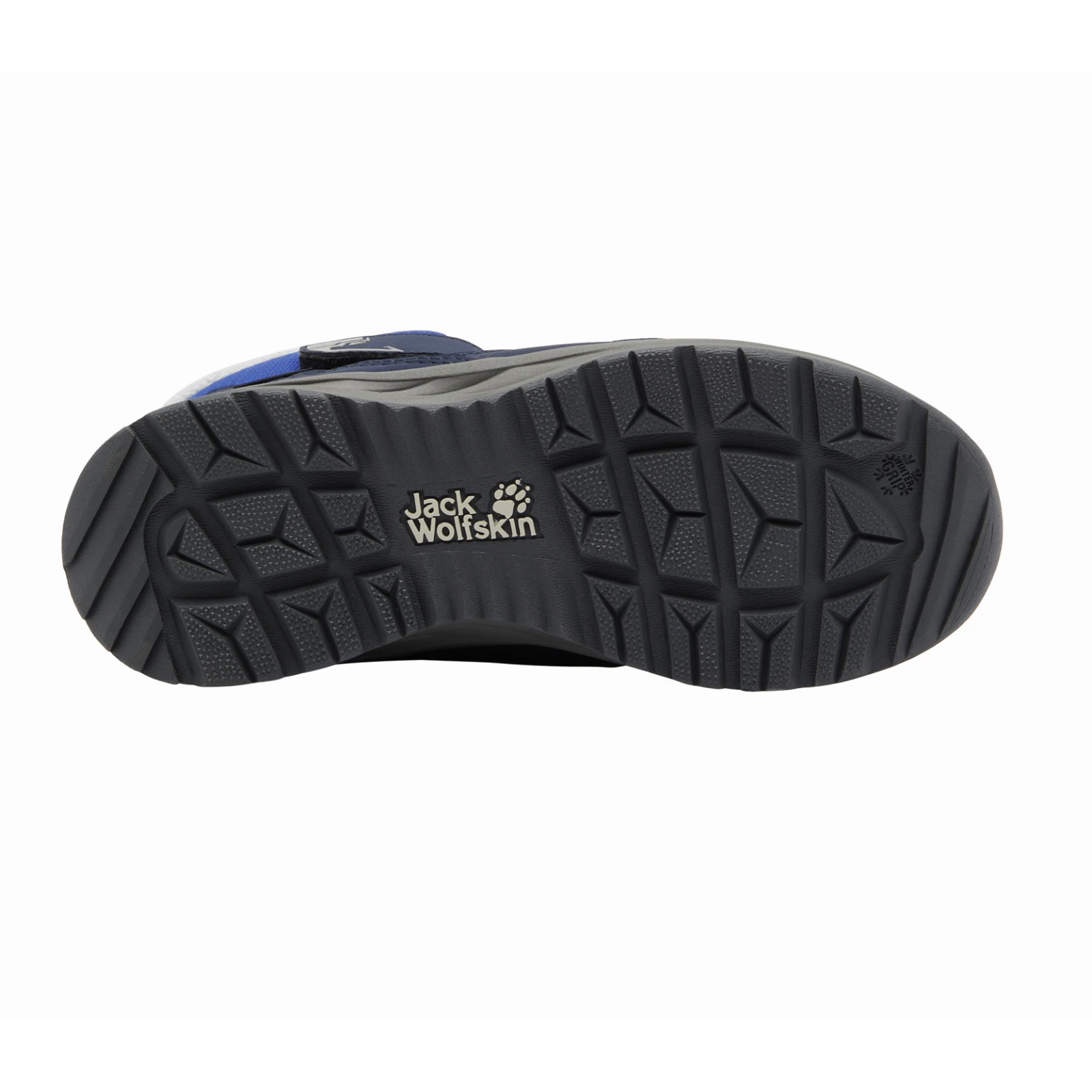Kinder Winterstiefel Polar Bear-B Texapore Mid Vc K der Marke Jack Wolfskin sind eine ideale Wahl für frostiges Wetter und überzeugen durch einen praktischen und schnellen Einstieg, dank der Befestigung mit doppelten Klettriemen und einer Anziehschlaufe. Das Obermaterial der Schuhe besteht aus leichtem Textil- und Synthetikmaterial mit einer wasserdichten und atmungsaktiven Texapore-Membran, die es Ihnen ermöglicht, durch Pfützen zu gehen, ohne nasse Füße zu bekommen. Für zusätzliche Wärme sorgt ein extra warmes Texawarm-Fleecefutter.