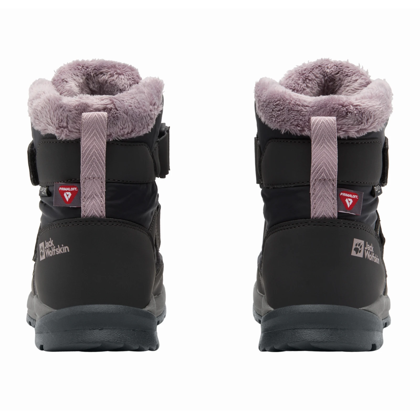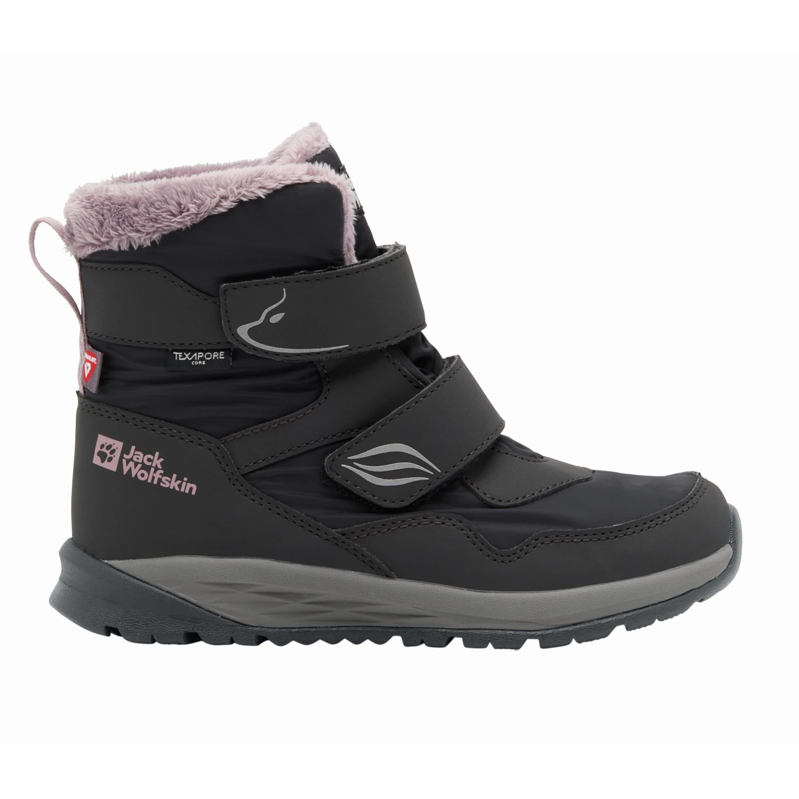 Kinder Winterstiefel Polar Bear-G Texapore Mid Vc K der Marke Jack Wolfskin sind eine ideale Wahl für frostiges Wetter und überzeugen durch einen praktischen und schnellen Einstieg, dank der Befestigung mit doppelten Klettriemen und einer Anziehschlaufe. Das Obermaterial der Schuhe besteht aus leichtem Textil- und Synthetikmaterial mit einer wasserdichten und atmungsaktiven Texapore-Membran, die es Ihnen ermöglicht, durch Pfützen zu gehen, ohne nasse Füße zu bekommen. Für zusätzliche Wärme sorgt ein extra warmes Texawarm-Fleecefutter.