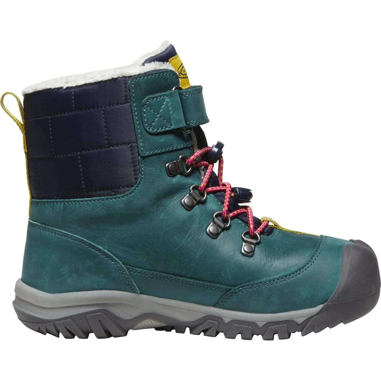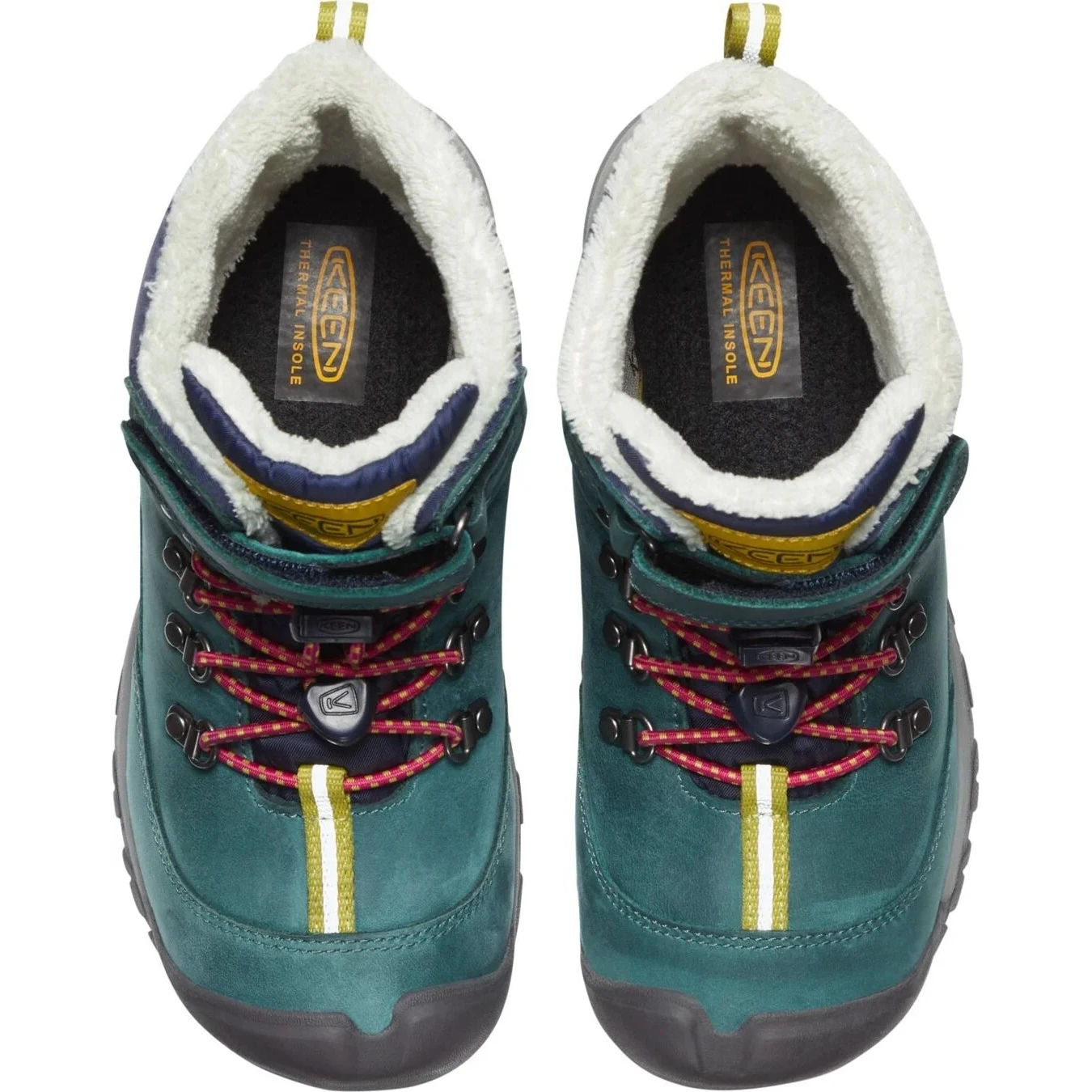 Kanibou WP sind gut isolierte Kinder-Winterstiefel der Marke Keen. Das Obermaterial besteht aus hochwertigem, wasserdichtem und ökologisch zertifiziertem Leder, das zusammen mit der KEEN.DRY-Membran und der PFAS-freien Imprägnierung für perfekten Schutz auch bei Nässe sorgt. Ein Fleecefutter mit höherem Flor und KEEN-Technologie sorgt für ausreichend Wärmekomfort .WARM bis -32 °C und eine Thermal Heat Shield-Einlegesohle, die die Wärme speichert. Die Innenseite des Schuhs ist mit der ökologischen ECO ODOR CONTROL-Technologie zur Geruchsreduzierung behandelt. Die KEEN.FUSION Gummisohle mit hochwertigem Profil verhindert ungewolltes Ausrutschen und ist zugleich leicht und langlebig. Ein Schnürsystem mit Kabel und Klettverschluss sorgt für problemloses Anziehen.