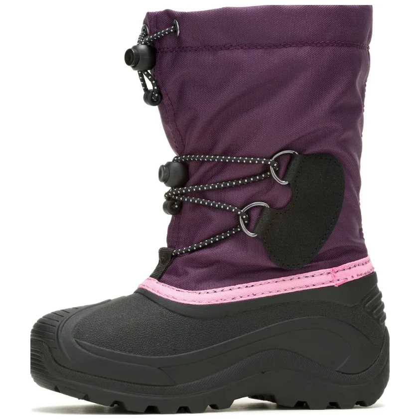 Junior-Winterstiefel Der Southpole 4 des kanadischen Herstellers Kamik ist das passende Schuhwerk für junge Polarforscher. Wasserdichte Konstruktion und versiegelte Nähte halten Schnee und Feuchtigkeit ab. Das Obermaterial besteht aus hochwertigem Nylon. Ein verstellbarer Schneekragen mit Kordelzug verhindert, dass unerwünschter Schnee in den Stiefel eindringt. Maximalen thermischen Komfort gewährleistet eine 6 mm dicke, herausnehmbare Zylex®-Einlage mit feuchtigkeitsableitendem Futter.