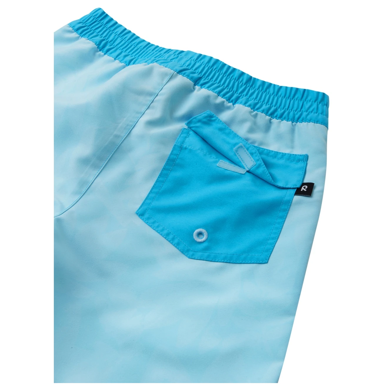 Zauberhafte Kinder Shorts für das Papaija Aqua Water der Firma Reima, die im nassen Zustand einen fröhlich bunten Print offenbaren. Die Shorts sind knielang, haben eine Mesh-Innenhose, einen elastischen Hosenbund mit Kordelzug, zwei Seitentaschen und eine Gesäßtasche. Das verwendete Material verfügt über einen UV-Schutzfaktor von 50+.