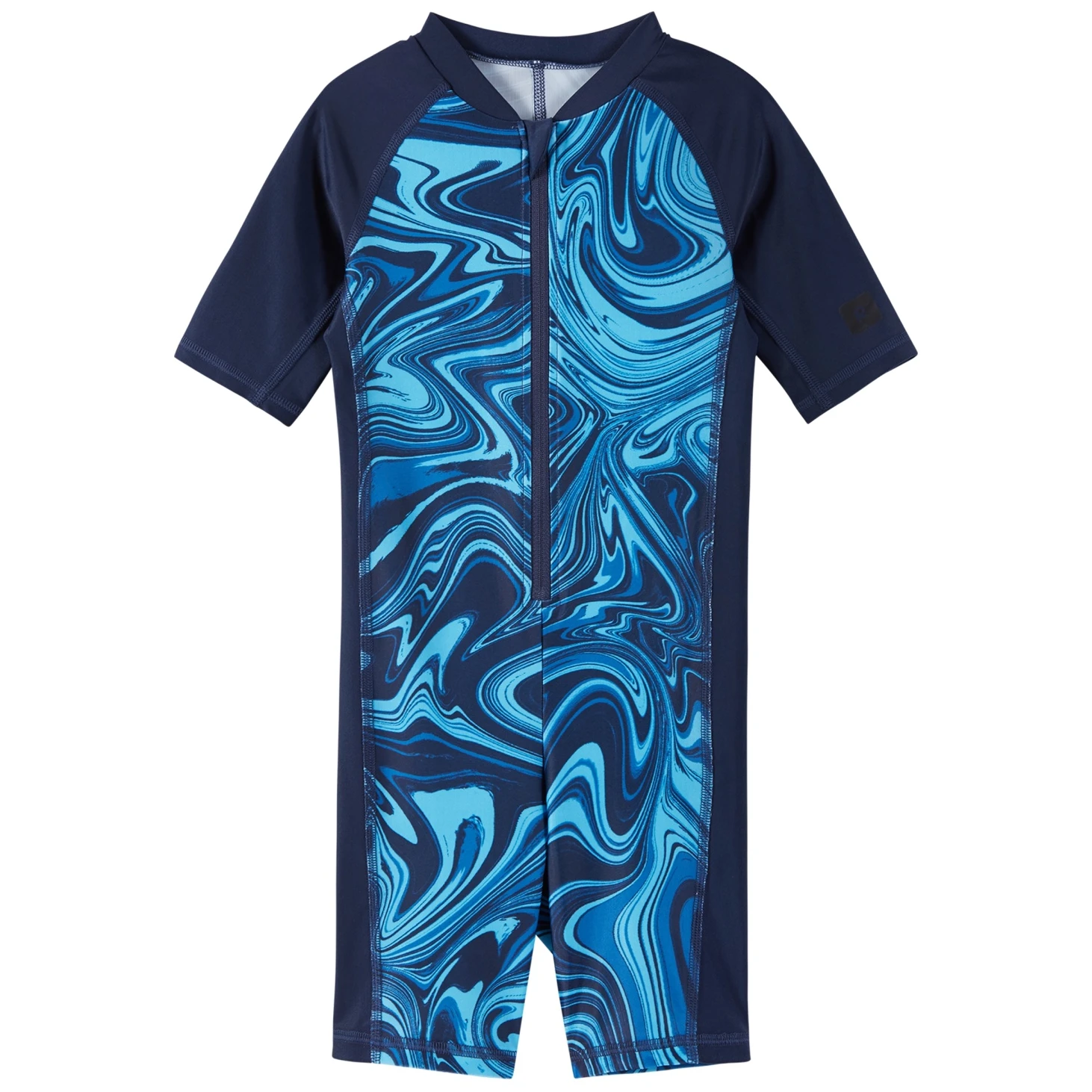 Der Vesihiisi Kinderbadeanzug der Marke Reima besteht aus Faser mit UV-Schutzfaktor 50+. Es bietet wirksamen Schutz vor den schädlichen Bestandteilen des Sonnenlichts.