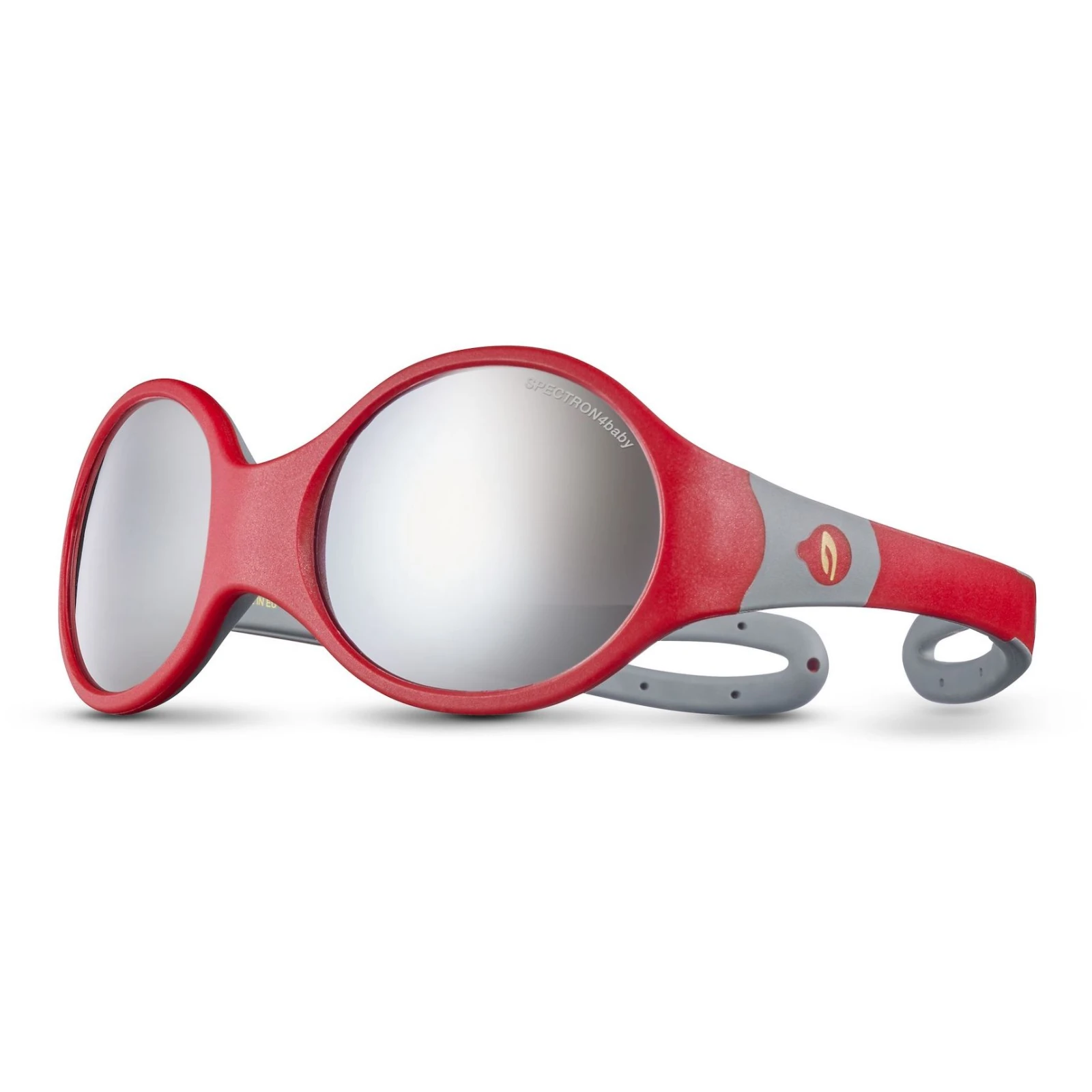 Kindersonnenbrille Loop L Sp4 der Marke Julbo für alle Sommerabenteuer für Kinder von 3 bis 5 Jahren. Die Form der Brille passt sich dem Gesicht des Kindes an und der Sonnenfilter der Kategorie 4 bietet höchstmöglichen Schutz für empfindliche Augen. Hochwertige Spectron 4-Polycarbonatgläser , die 100 % Schutz vor UVA (vorzeitige Augenalterung), UVB (zerstört die Hornhaut) und UVC (die stärkste UV-Strahlung, kann tödliche Folgen für den Körper haben) bieten.