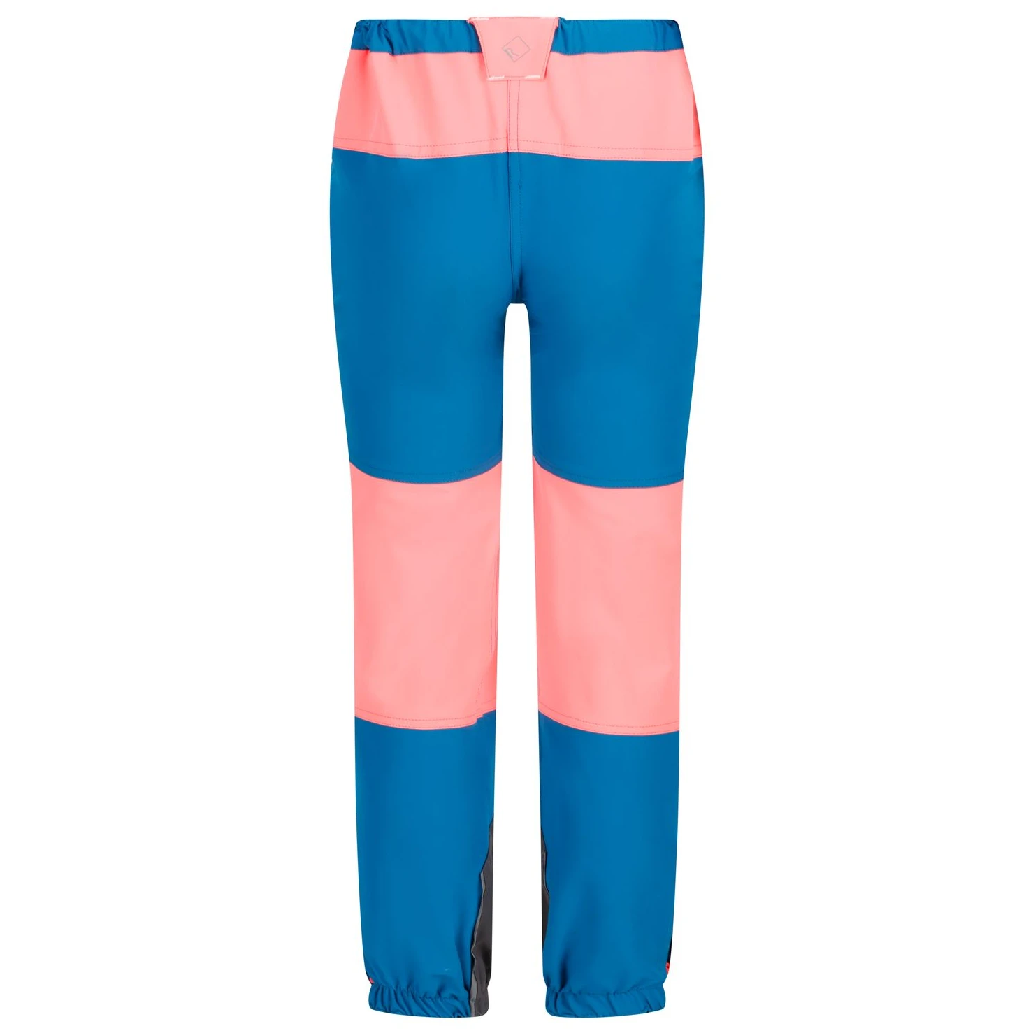 Auf der Vorderseite der Hose befinden sich zwei Haupttaschen mit Reißverschluss, in denen Kinder kleine Gegenstände verstauen können. Die Taille ist seitlich mit breiten Gummizügen ausgestattet. Die Knie sind vorgeformt und ermöglichen so perfekte Bewegungsfreiheit. Die Hose ist innen mit einem verstärkten Material ausgestattet, das ein Aufscheuern des Stoffes verhindert. Abgerundet wird die Hose durch einen Schnellkordelzug und Reißverschluss zur eventuellen Erweiterung. Der Reißverschluss erleichtert Kindern das Anziehen der Schuhe.