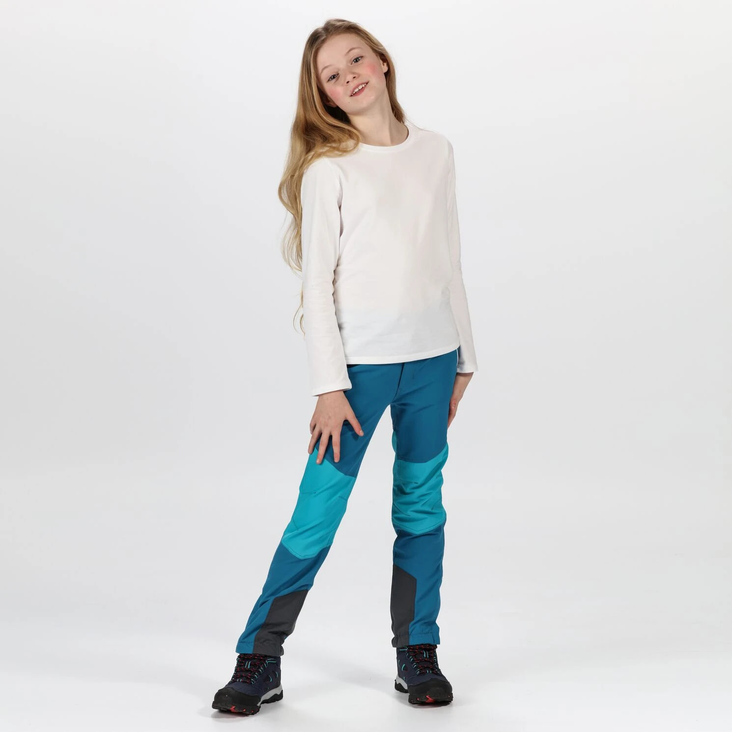 Die Kinder-Wanderhose Tech Mountain Trs des Herstellers Regatta mit reflektierenden Details ist ein Must-Have für jeden kleinen, begeisterten Wanderer.