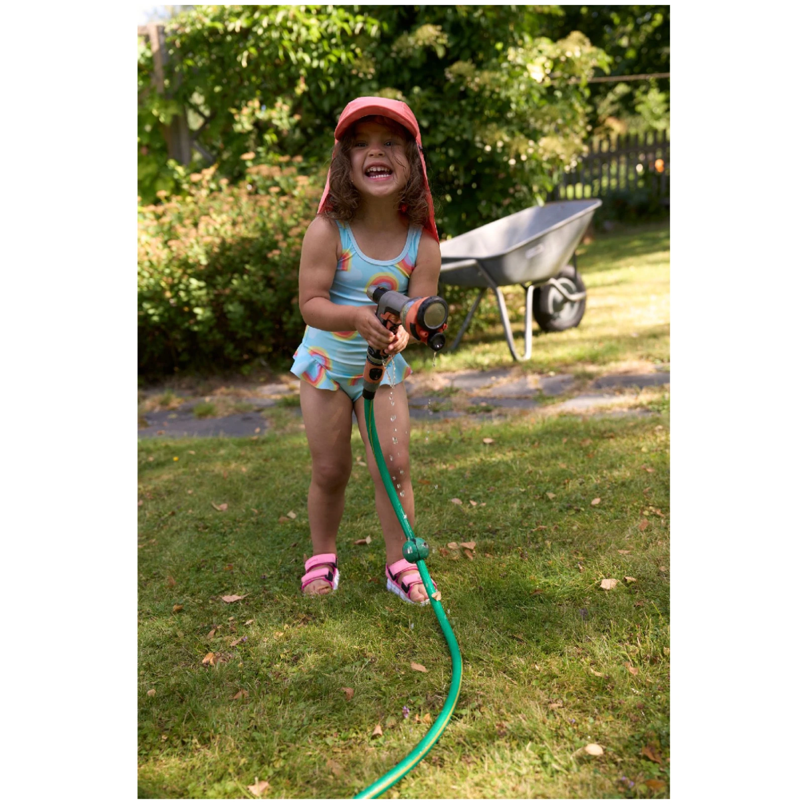 Die Kindermütze Mustekala von Reima ist ein absolut unverzichtbares Accessoire für sonniges Wetter. Sie hat einen leichteren Schnitt ohne Futter und ist aus Stretchmaterial mit UV-Schutzfaktor 50+ gefertigt. Das Visier schützt das Gesicht, während die hintere Krempe den Nacken vor der Sonne schützt.