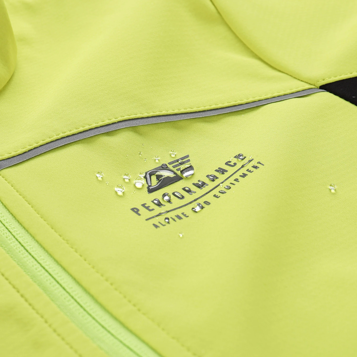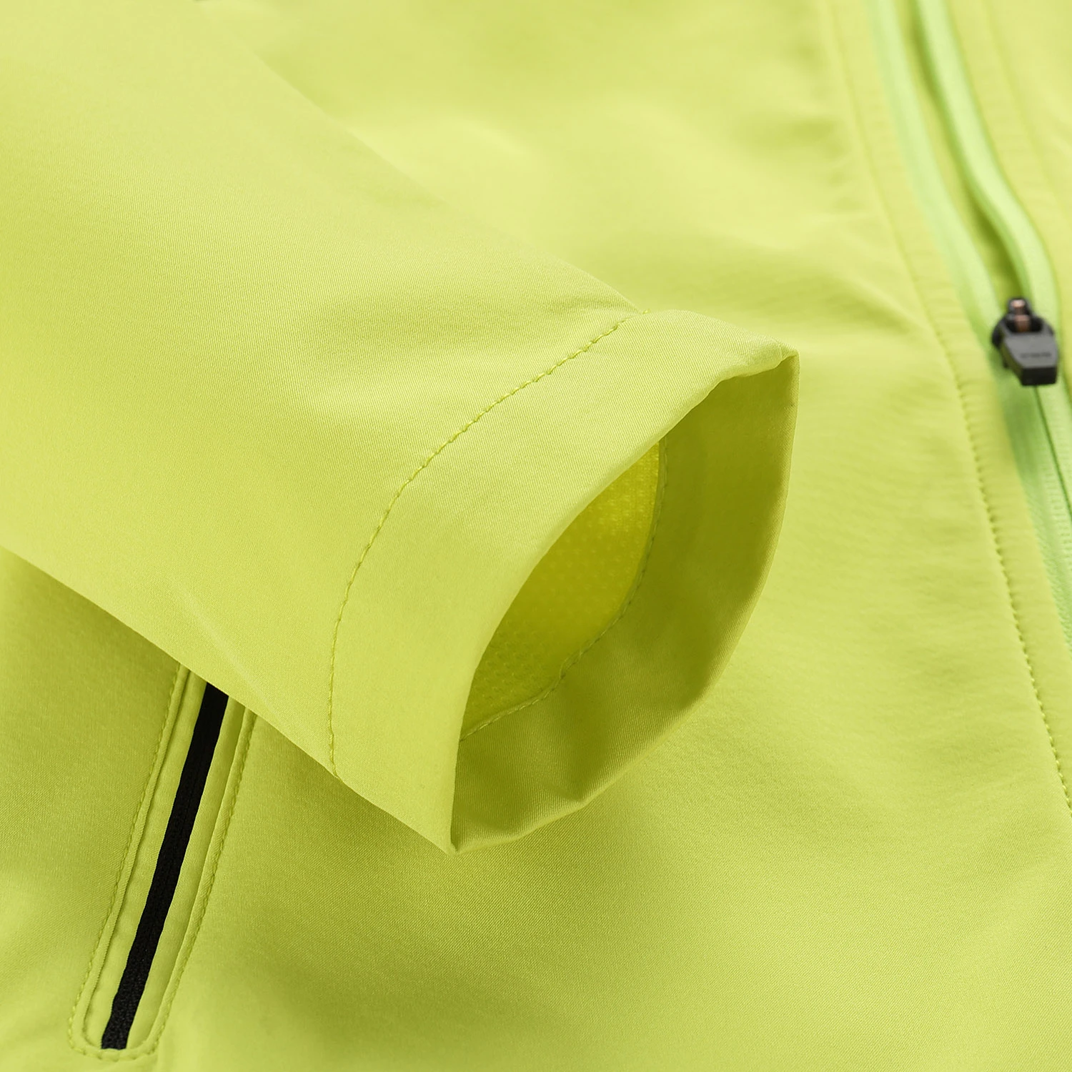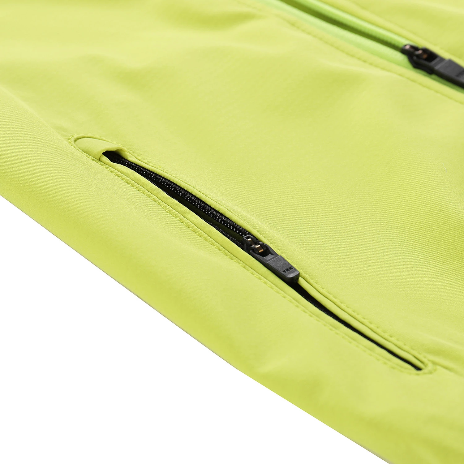 Die Jacke besteht aus flexiblem 3-Lagen-Material mit einer Soft Shell Windbarrier-Membran. Die Außenseite ist zusätzlich mit einer DWR-Behandlungversehen, die über eine speziell aufgetragene wasserabweisende Schichtverfügt. Fallende Feuchtigkeit (Wasser, Schnee) erzeugt winzige Tröpfchen, die sofort von der Oberfläche abperlen , sodass die Kleidung auch bei schlechtem Wetter länger trocken bleibt. Im Inneren befindet sich ein warmes Material, das sich sehr angenehm anfühlt. Das Material ist in alle Richtungen flexibel und trocknet sehr gut. Alles Eigenschaften, die für maximalen Komfort für den Körper sorgen. Der taillierte, körpernahe Schnitt ist nach hinten verlängert. Zwei Haupttaschen mit Reißverschluss bieten Platz für alle wichtigen Dinge.