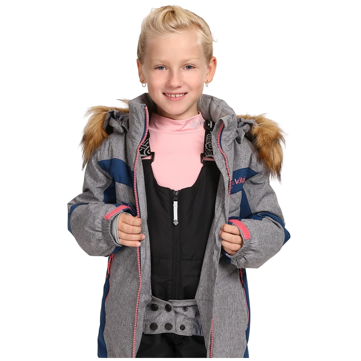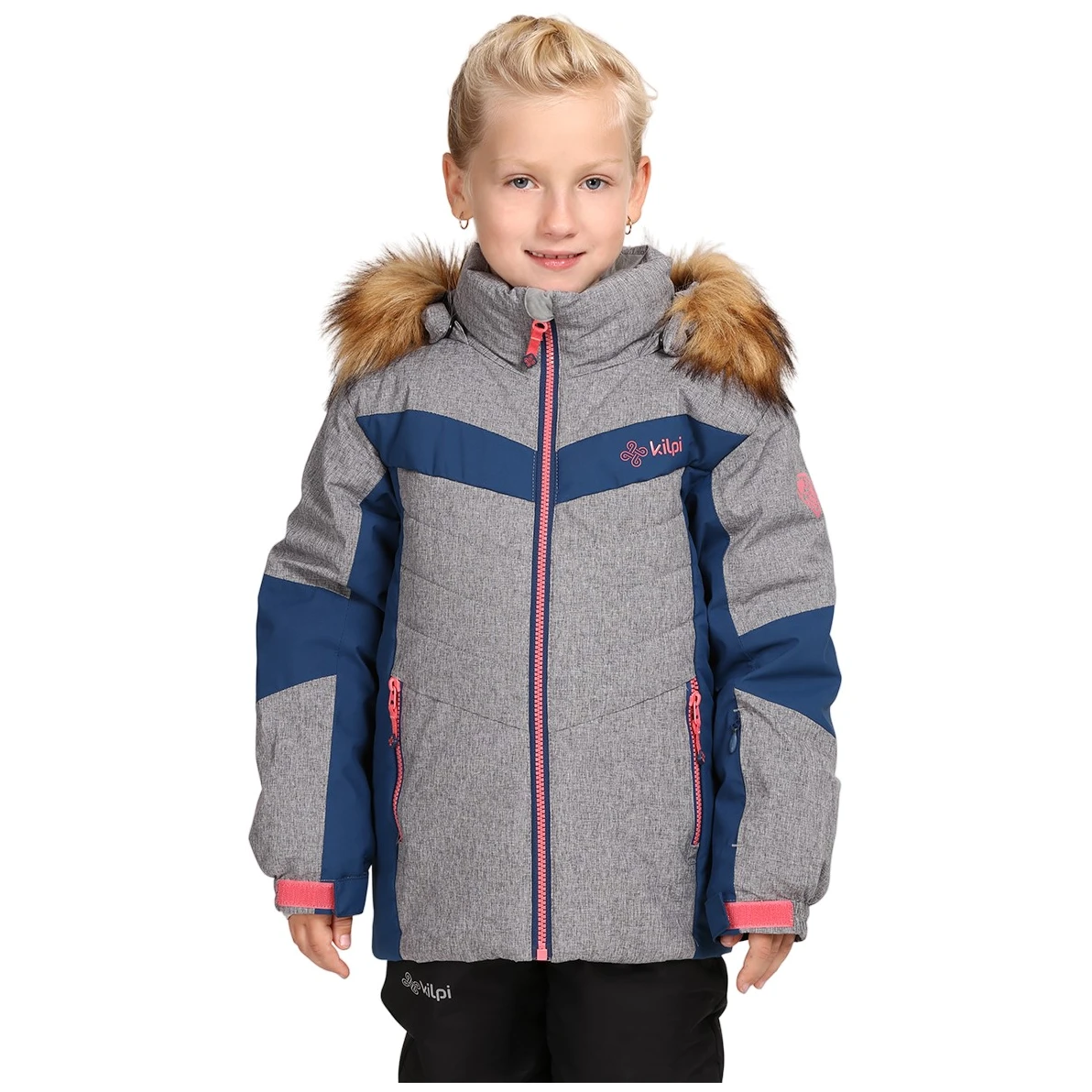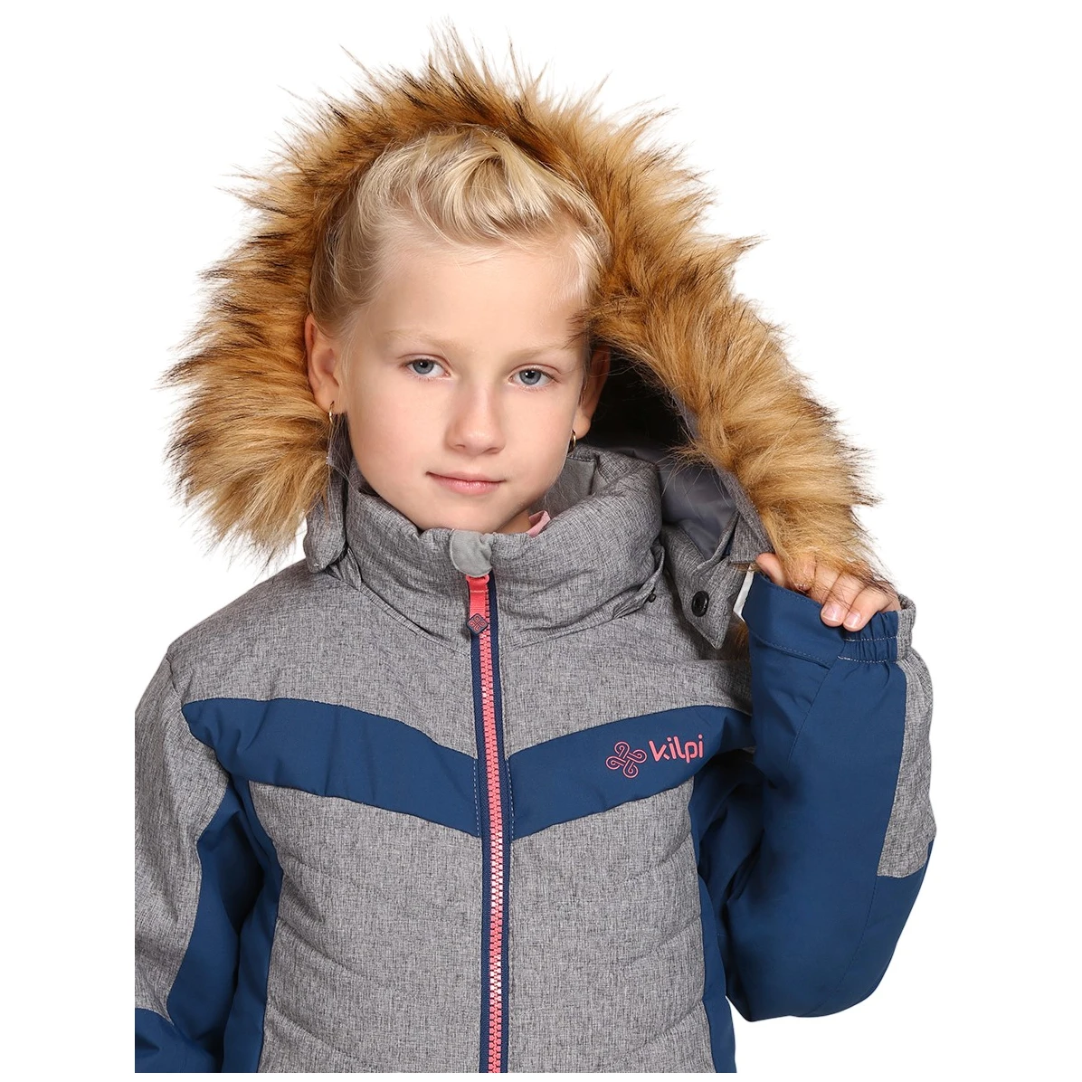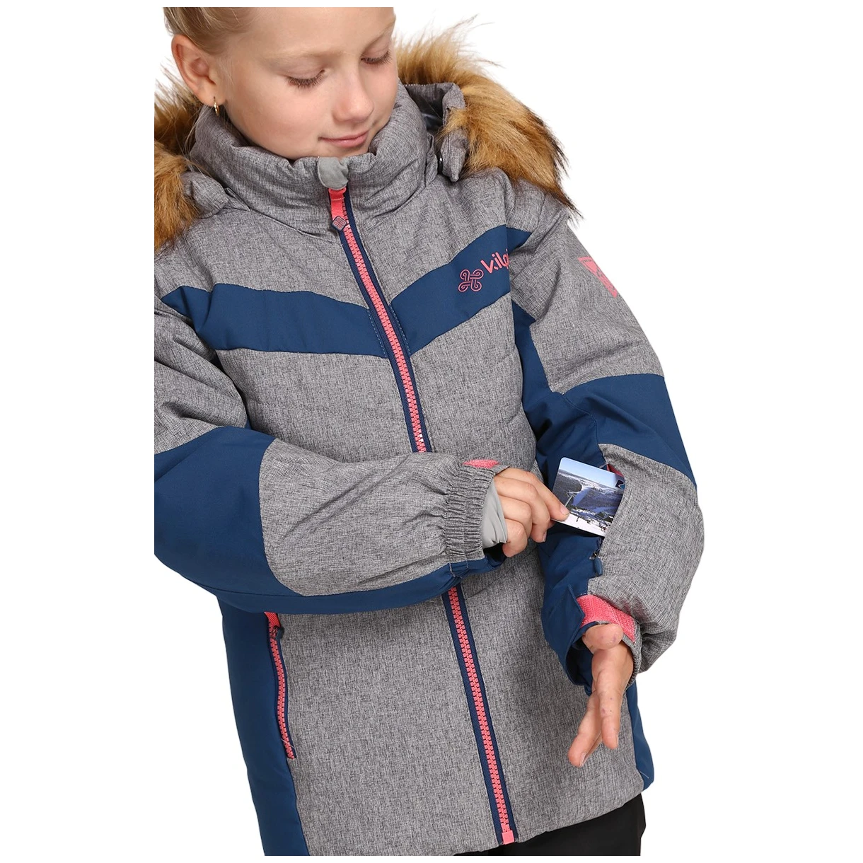 , innere Ärmelbündchen und Schneekragen. Die Jacke hat zwei Haupttaschen, eine Ärmel- Skipasstasche und eine abnehmbare Kapuze mit stylischem Kunstpelzbesatz. Die Ärmelsäume sind mit Klettverschlüssen versehen, so dass ein bequemes Anziehen über Handschuhen möglich ist. Zu den Extras gehören reflektierende Elemente und ein praktisches Namensschild auf der Innenseite.