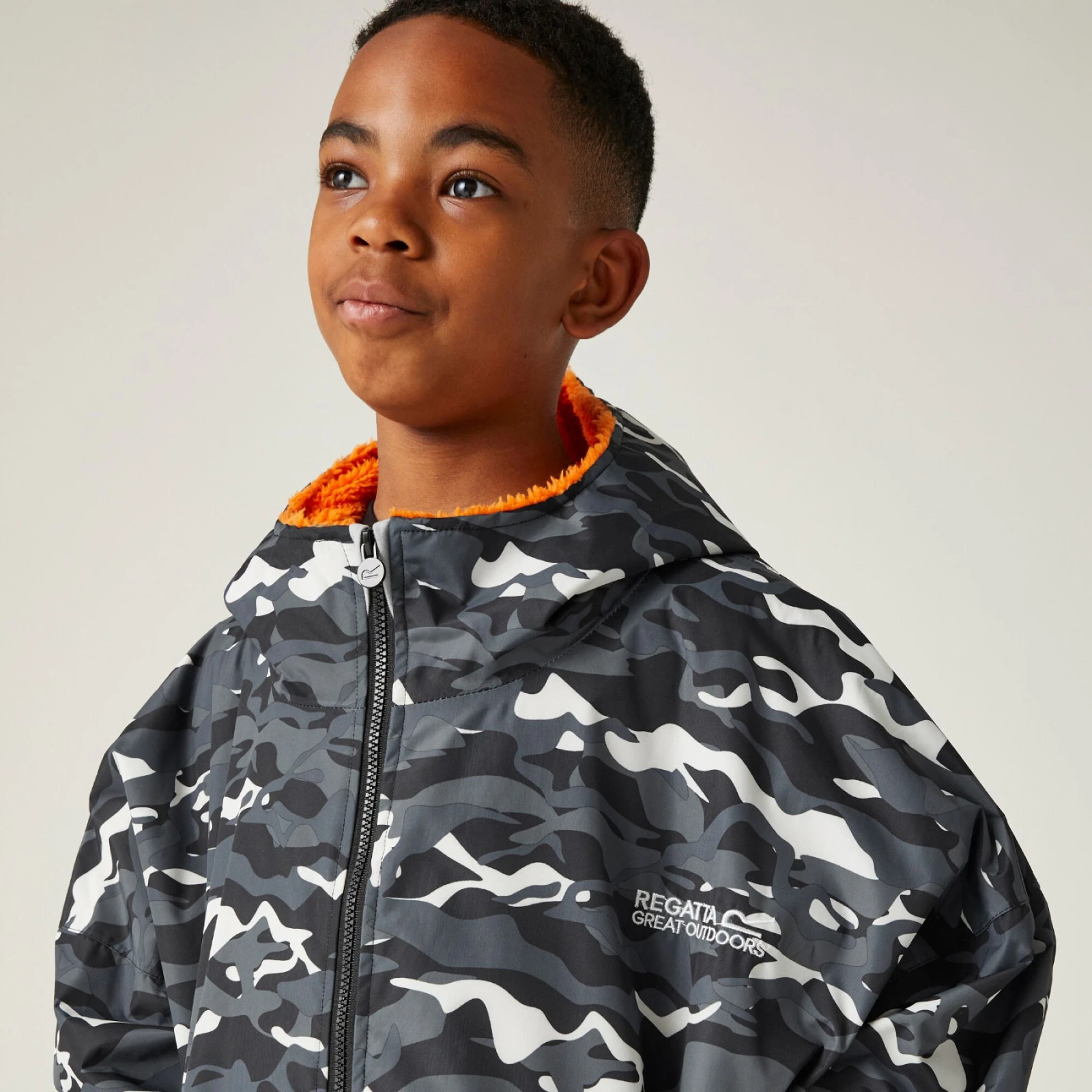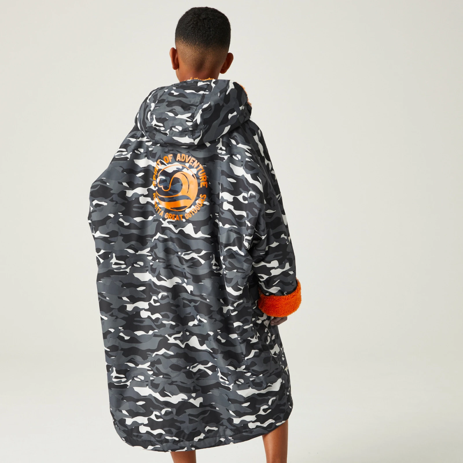 Der wasserdichte Kinderbademantel Junior Waterproof Changing Robe von Regatta bietet Wärme, Komfort und ermöglicht diskretes Umziehen mit Schutz vor Wind und Regen.