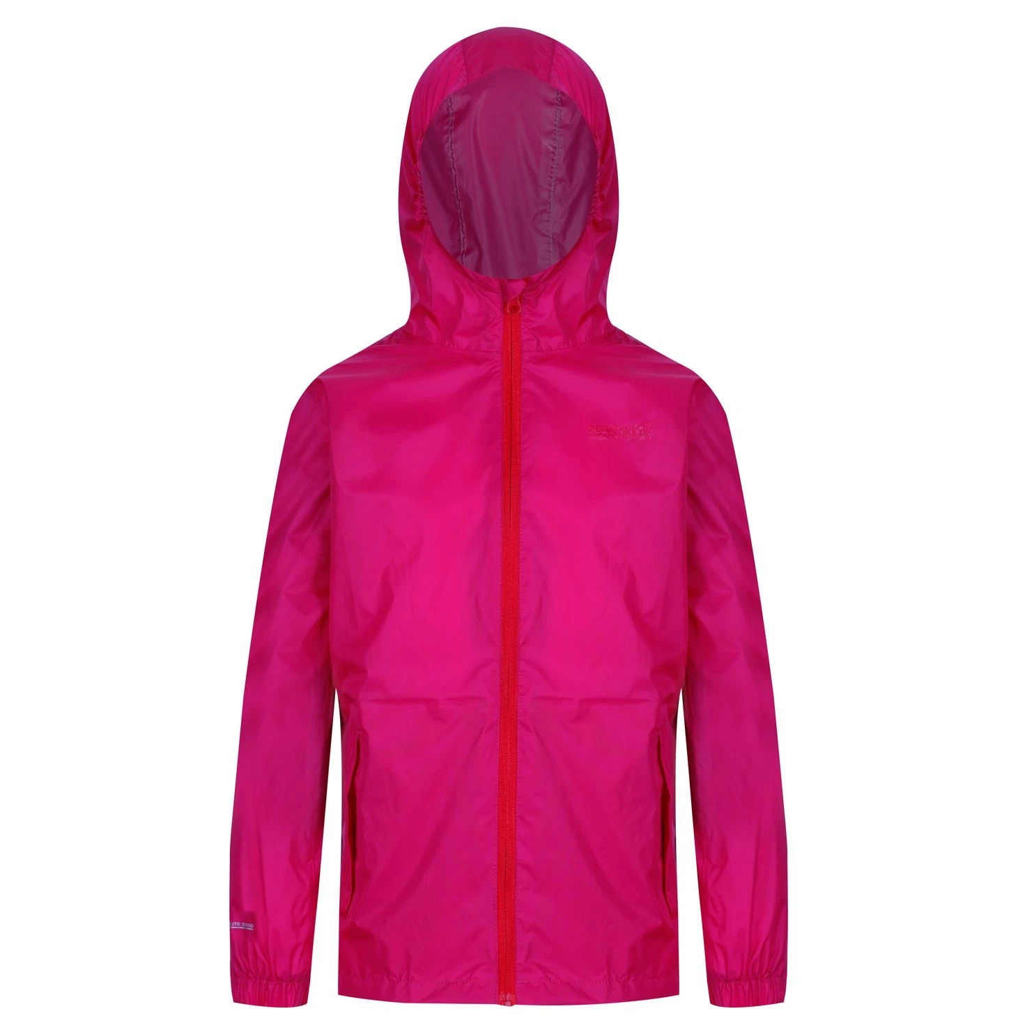 Leichte, wasserdichte Kinderjacke Regatta Kid Pk It Jkt III, die Kinder vor Regen schützt. Die Jacke ist für alle Kinder gedacht, die gerne wandern, campen und Schulausflüge machen.