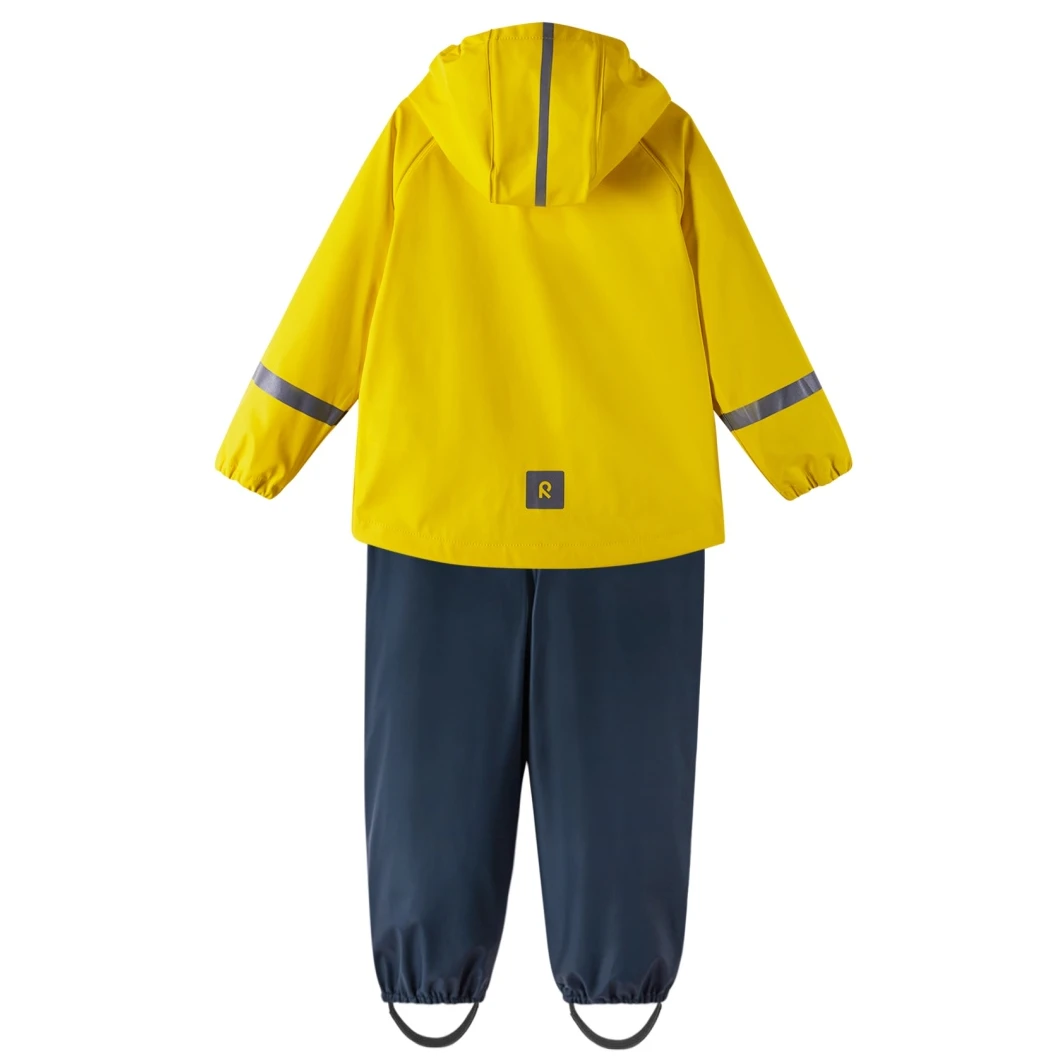 Lass es einfach regnen. Der ungefütterte Kleinkinder-Regenanzug Tihku vom Hersteller Reima ist ein tolles Kleidungsstück für regnerische Tage im Frühjahr und Herbst. Durch das Hinzufügen warmer Zwischenschichten sind Kinder auch an frostigen Wintertagen geschützt. Wasserdicht verschweißte Nähte sorgen dafür, dass kein Tropfen eindringt. Die abnehmbare Kapuze schützt nicht nur vor Regen, sondern bietet auch Sicherheit bei Spielen im Freien. Dank der verstellbaren, elastischen Hosenträger bleibt die Hose an Ort und Stelle und sitzt perfekt. Abnehmbare Stiefelschlaufen lassen sich einfach unter Gummistiefeln oder wasserdichten Turnschuhen befestigen und halten die Enden Ihrer Hose an Ort und Stelle. Reflektierende Elemente sorgen dafür, dass kleine Abenteurer auch nach Sonnenuntergang sichtbar sind. Regenbekleidung ohne schädliches PVC.
