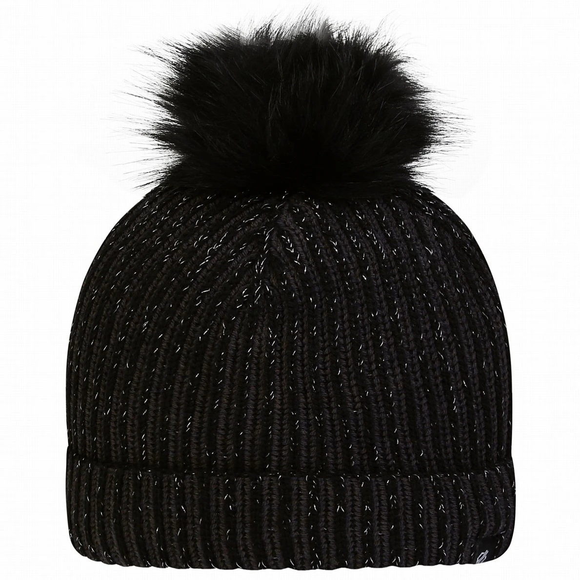 Die Ding Beanie Kindermütze der Marke Dare 2b ist ein ideales Accessoire für frostige Wintertage. Es besteht aus recycelter Strickware mit Metalldetails, einem Kunstpelzbommel und mit Fleecefutter.