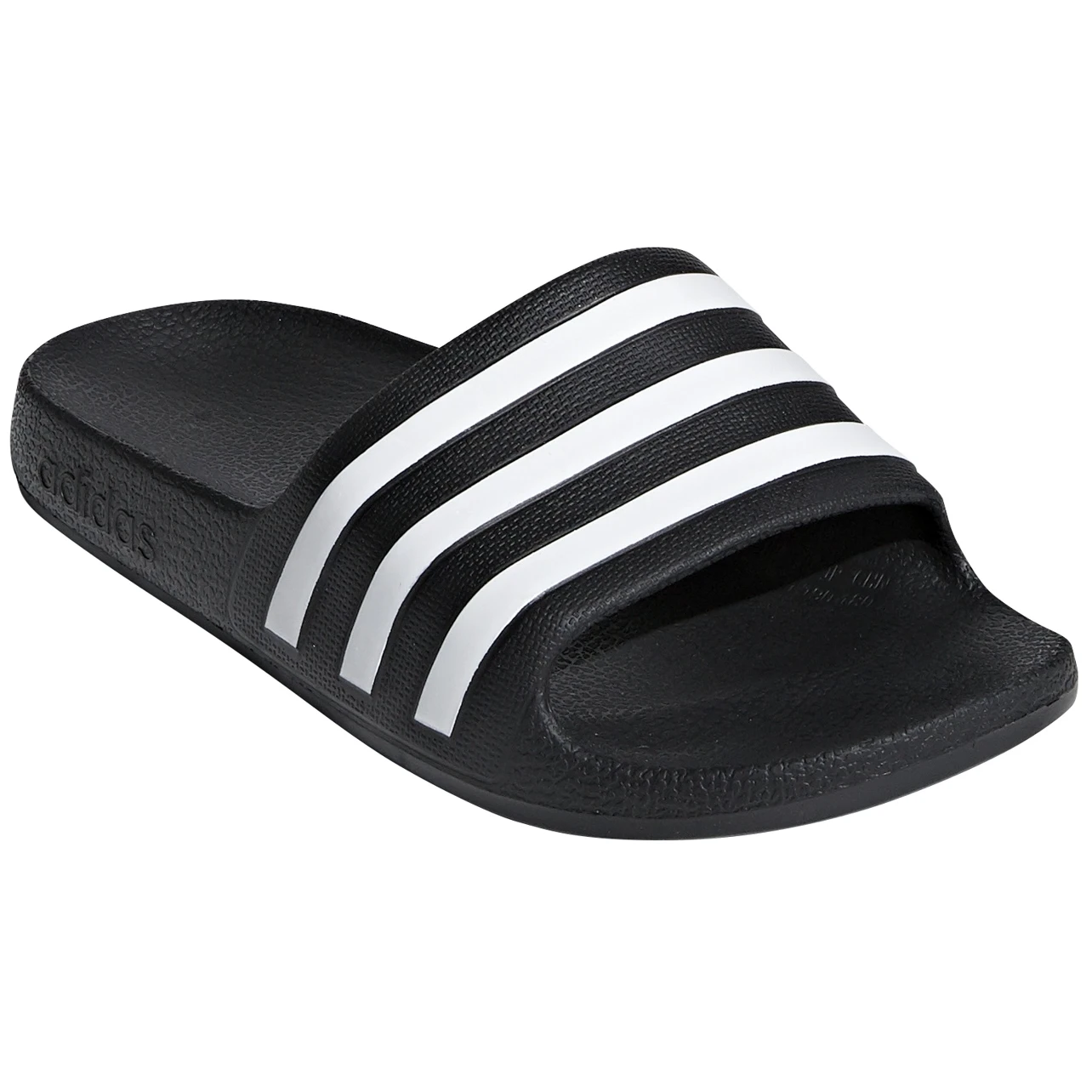 Ziehen Sie Ihren Kindern nach dem Schwimmen unter der Dusche die Adilette Aqua-Slipper Adidas an. Diese eleganten Slipper für Kinder sind mit den kultigen 3-Streifen Adidas versehen.
