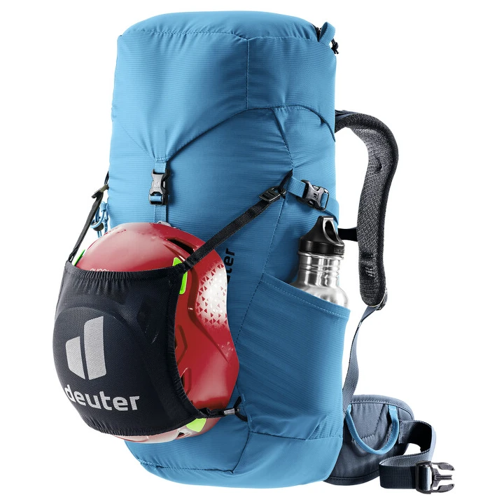 Der Rucksack bietet außerdem einen verstärkten Boden, einen Deckel mit Reißverschlusstasche, Kompressionsriemen und Schlaufen zur Befestigung von Kletterausrüstung, wie zum Beispiel einer Eispickelschlaufe und Stöcken. Am Hüftgurt befinden sich 2 Ösen, die zur Anbringung von Karabinern dienen, außerdem Riemen zur Lastenregulierung, ein SOS-Label und Befestigungsschlaufen für eine Helmhalterung. Diesen Leichtrucksack werden Sie einfach lieben!