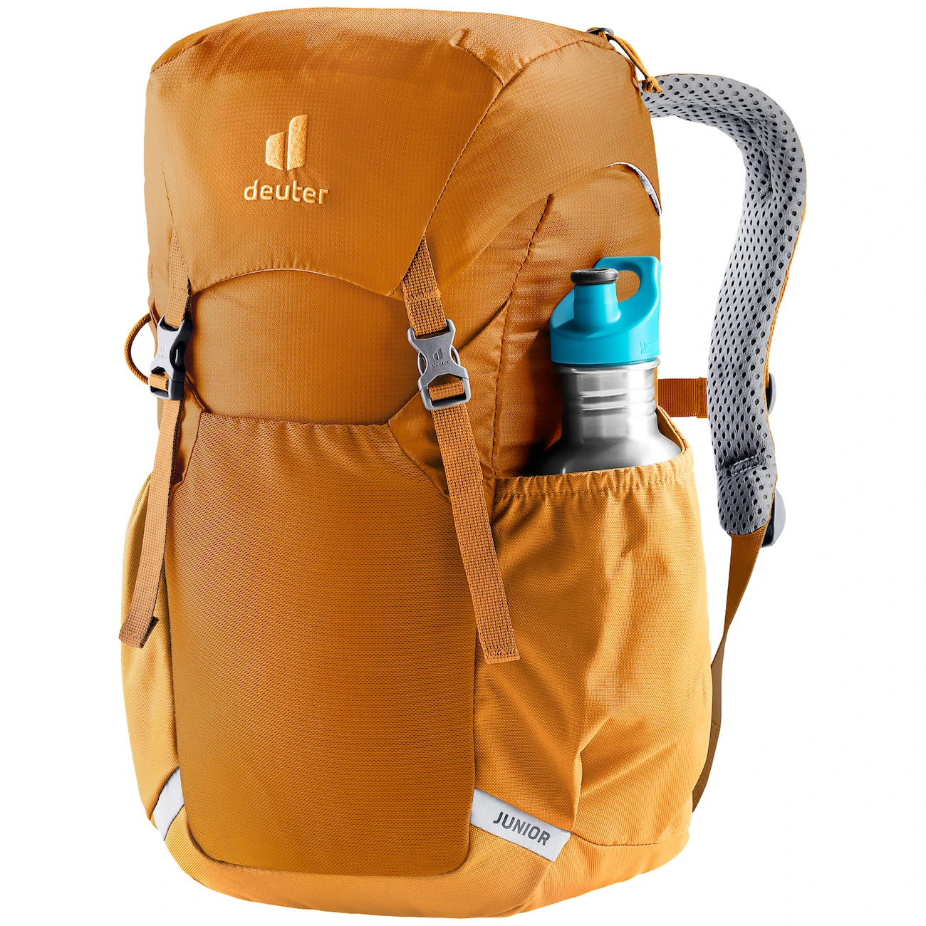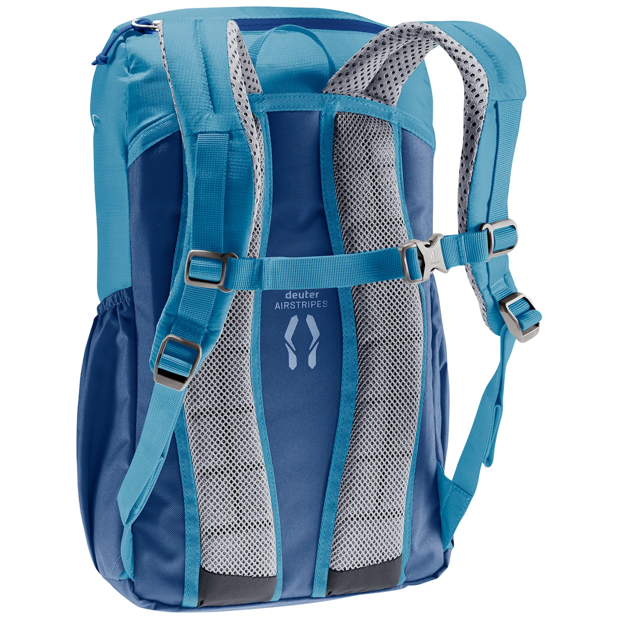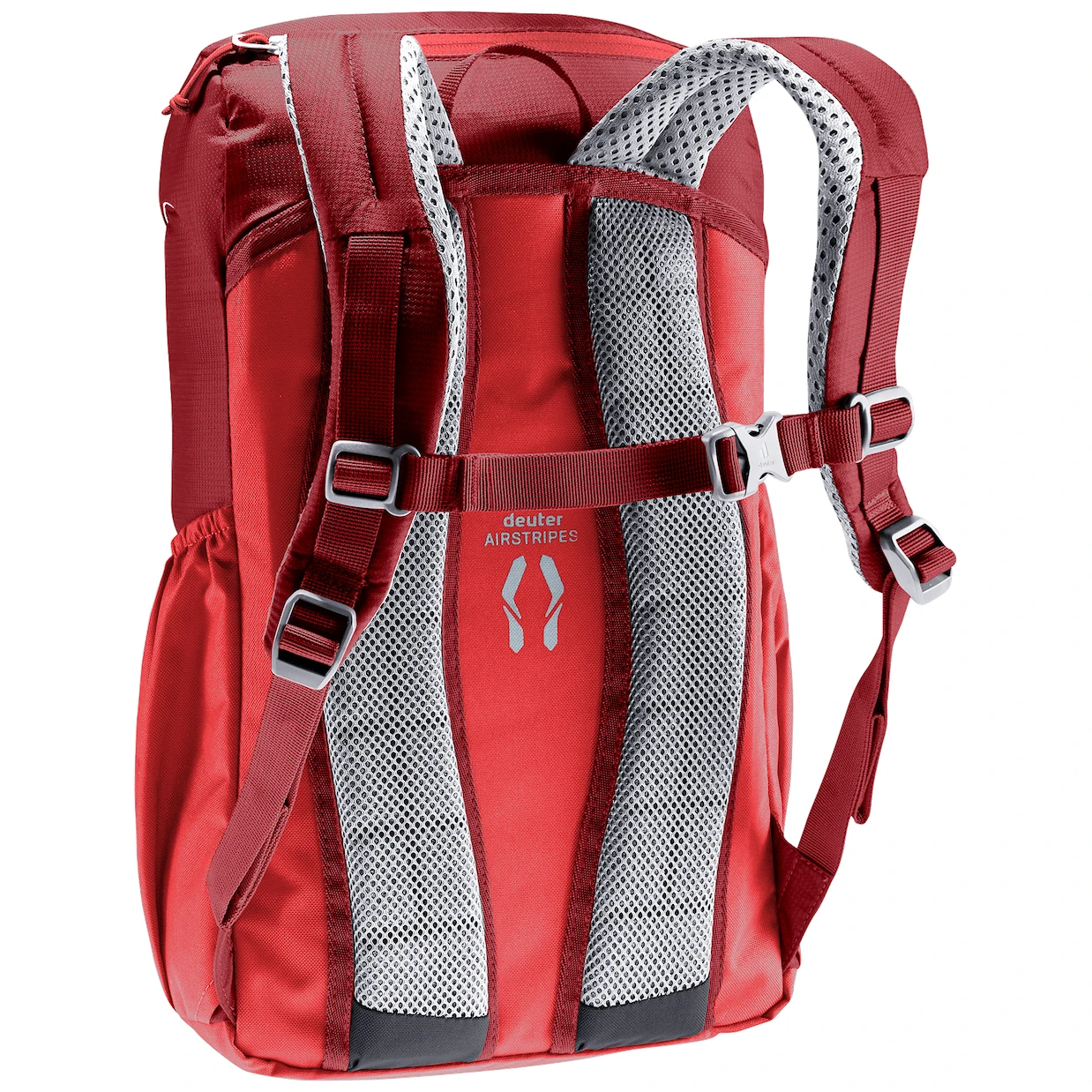 Der Junior Kinderrucksack der Marke Deuter ist in schlichtem Schnitt aus kräftigem und abriebfestem Material gefertigt. Für Komfort sorgen ein gepolsterter Rücken und das Airstripes-Rückensystem. Anatomisch geformte Schultergurte und ein verstellbarer Brustgurt sorgen für sicheren Sitz und Bewegungsfreiheit. Der Rucksack ist perfekt belüftet und Sie werden den großzügigen Stauraum, insbesondere die Reißverschlusstasche auf der Vorderseite, den Deckel mit Tasche, die Seitentaschen und eine Tasche für nasse Gegenstände, sicher zu schätzen wissen. Es bietet außerdem eine Schlüsselschlaufe und reflektierende Patches, um die Sicherheit Ihrer Kinder zu erhöhen.